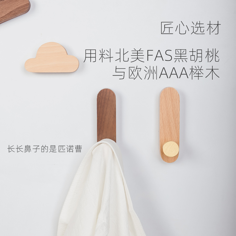 Literary solid wood hook after entering the creative door without punching wall hanging porch hanging clothes wall storage round coat hook