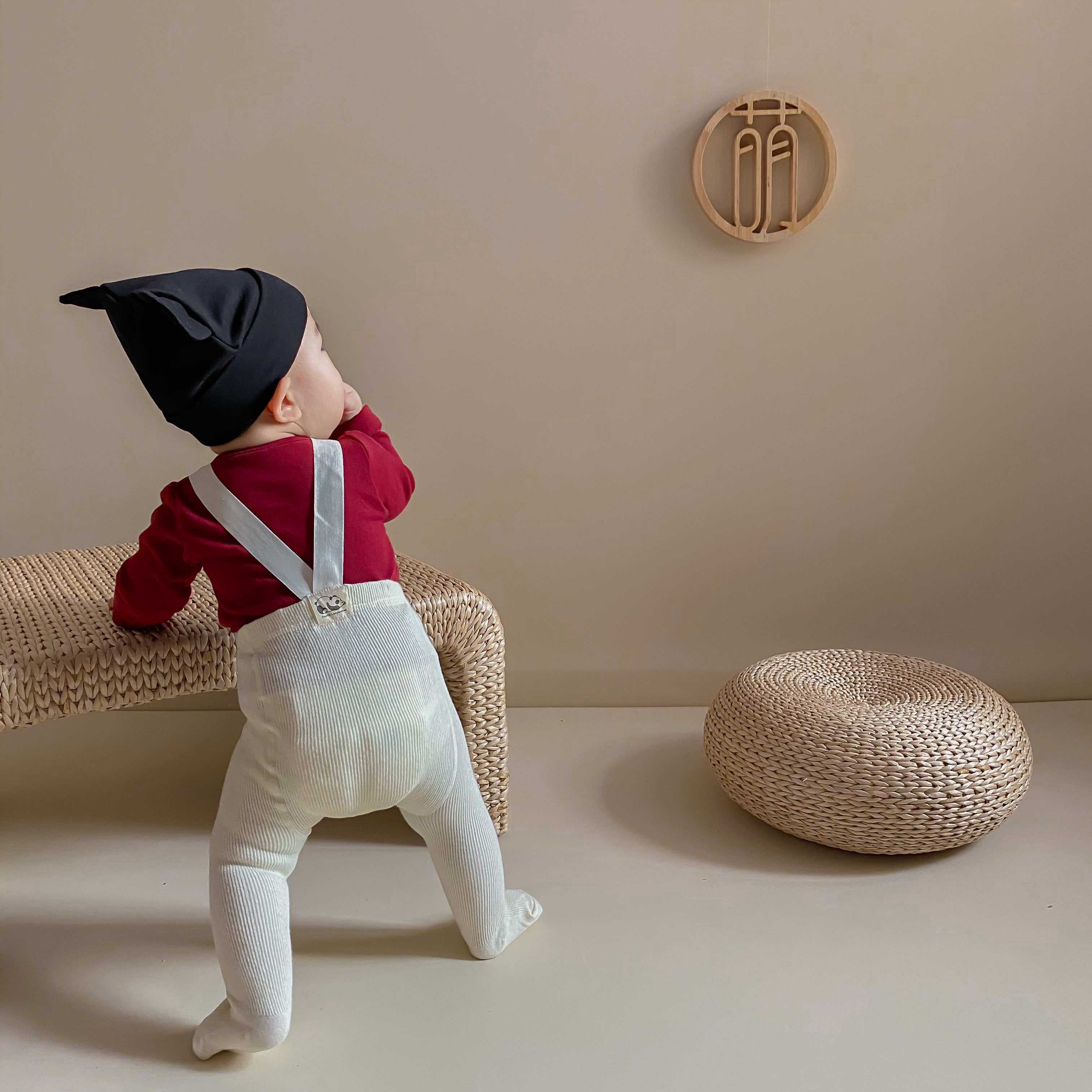 South Korean in boys and girls with trousers , boys and girls baby cotton high waist bottle baby pants , baby trousers , red children's dress