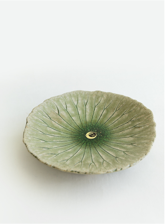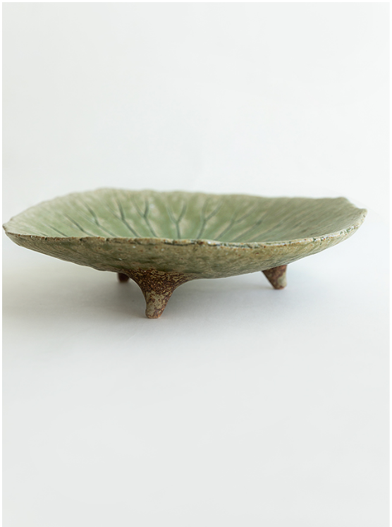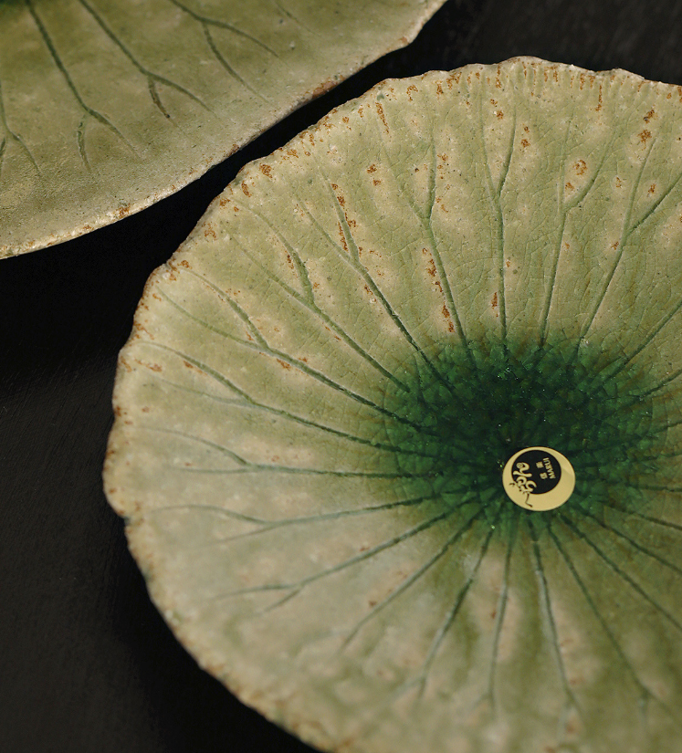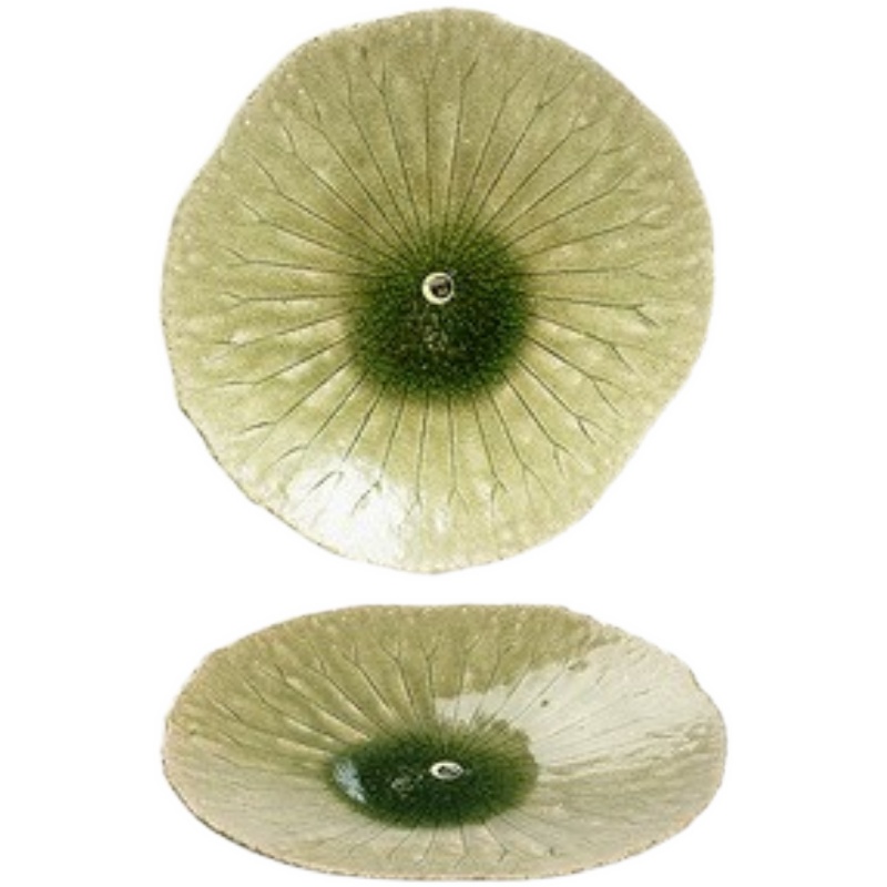 Japan imports hand-made rough pottery lotus leaf-shaped plate Japanese-style household ice-cracked glaze lotus leaf three-legged creative sashimi plate