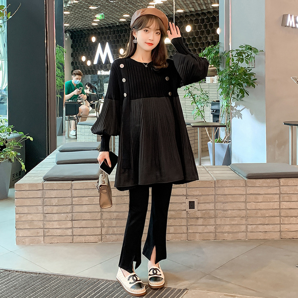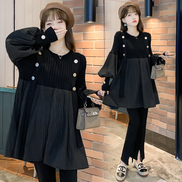 Large size Pregnant Woman Foreign Dress Fashion style Suit Spring Autumn with jacket Chauma with small sub-covered pleated dress 200 catty