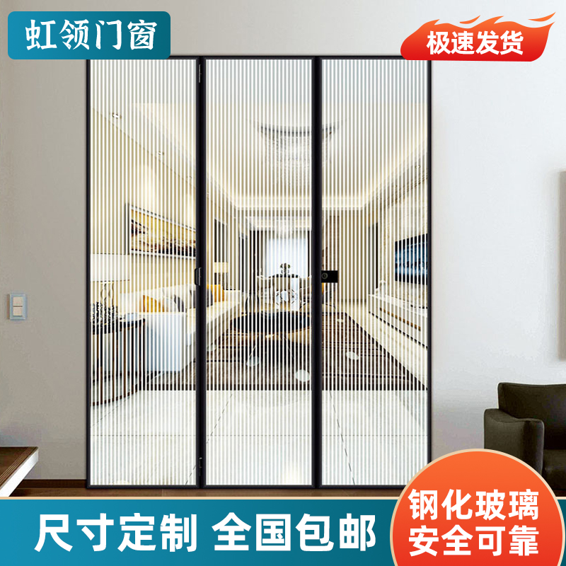 Net red narrow side thin frame titanium aluminum alloy folding door partition Changhong glass kitchen living room balcony partition door customization