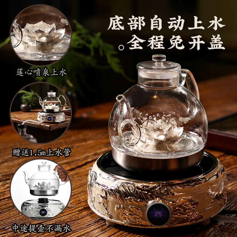 Red World 999 Pure Silver Health Care Burning Water Pot Home Bottom Upper Water Kongfu Tea Furniture Full Automatic Electric Hot Bubble Tea Stove