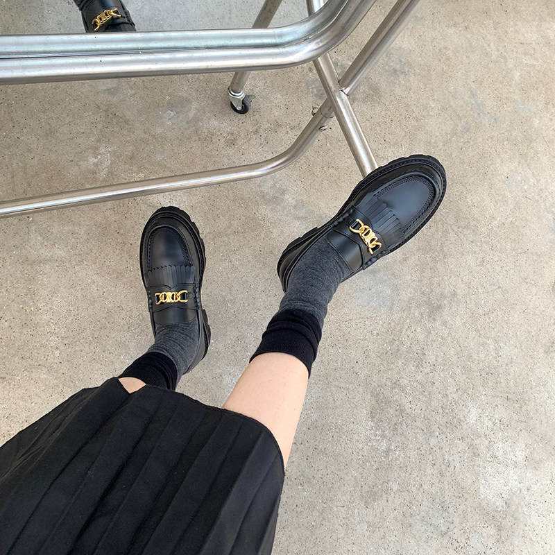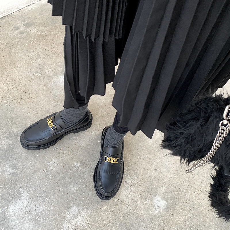 Abao home British thick-soled leather triumphal arch buckle fringe Loaf shoes women's spring new slim little leather shoes