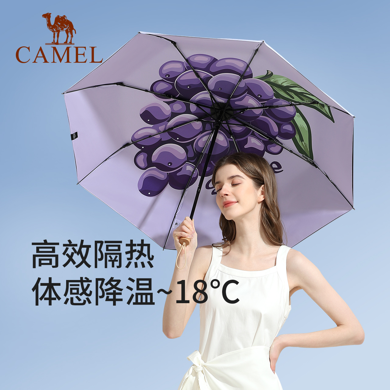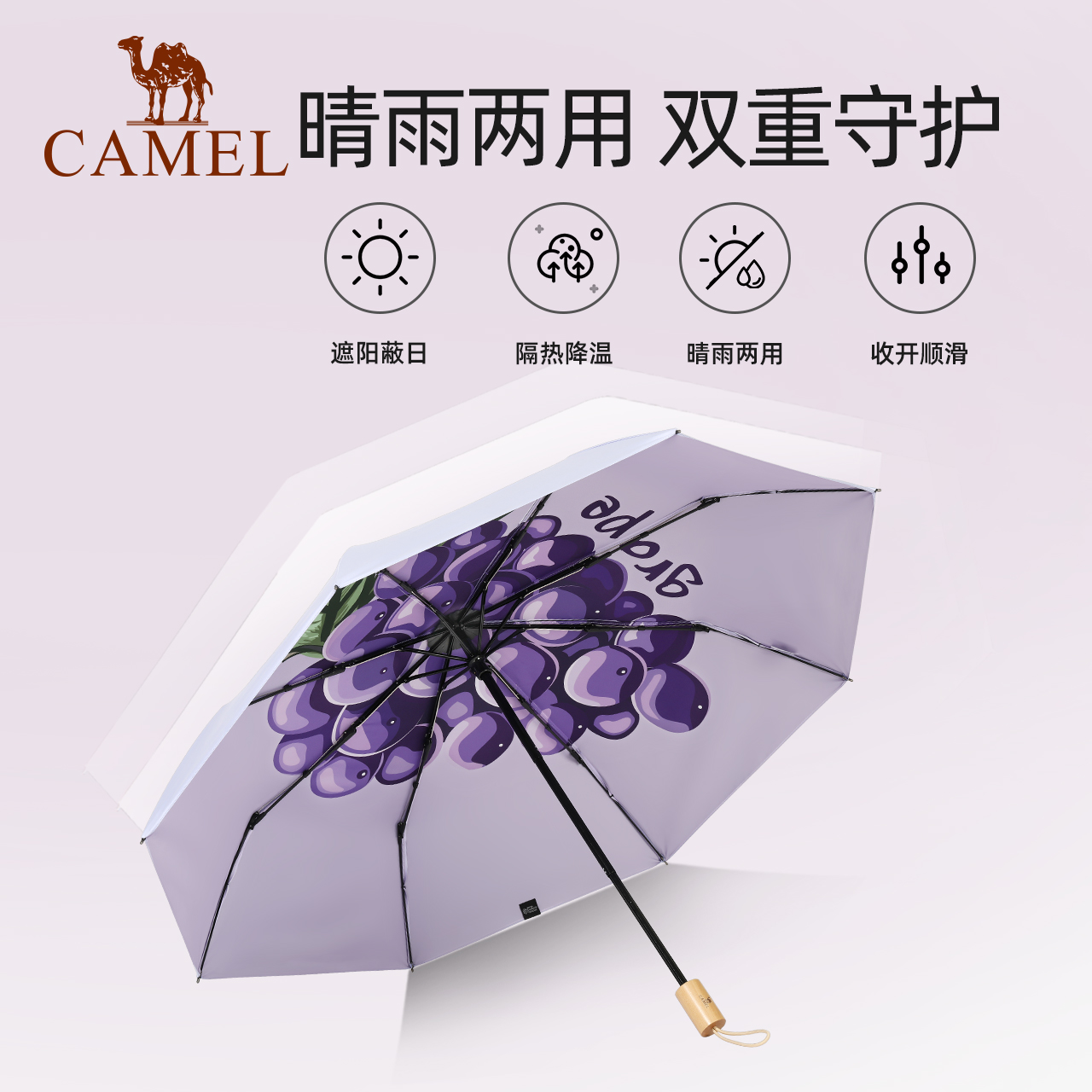 Camel umbrella female sun and rain dual-use umbrella sunscreen anti-UV folding girl high-value sunshade black plastic umbrella
