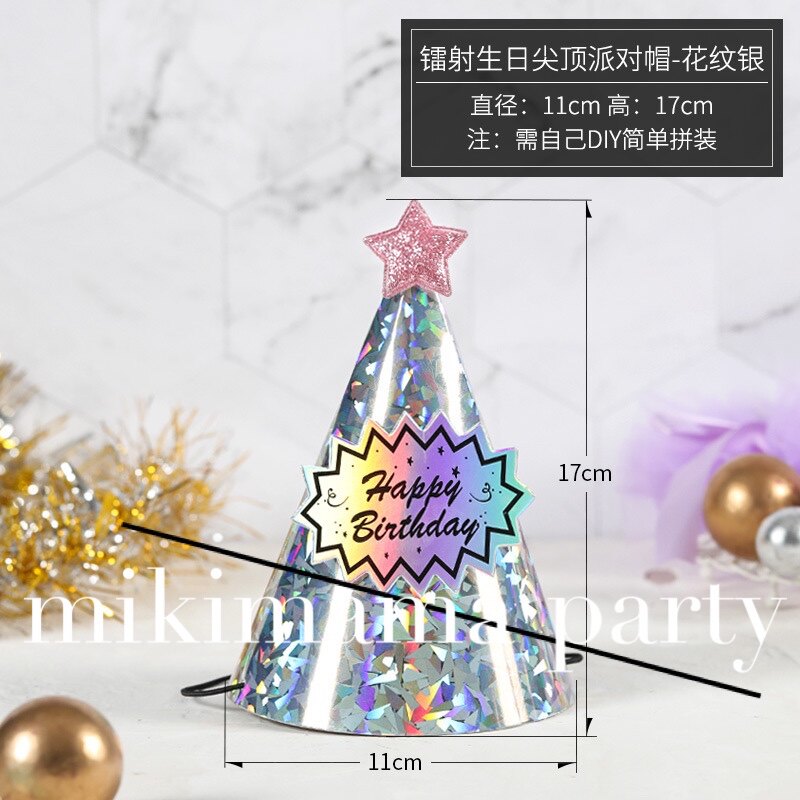 Korean Birthday Party Hat Gold Letter Birthday Hat Laser Star Pointed Hat Children's Birthday Hat Pointed Hat