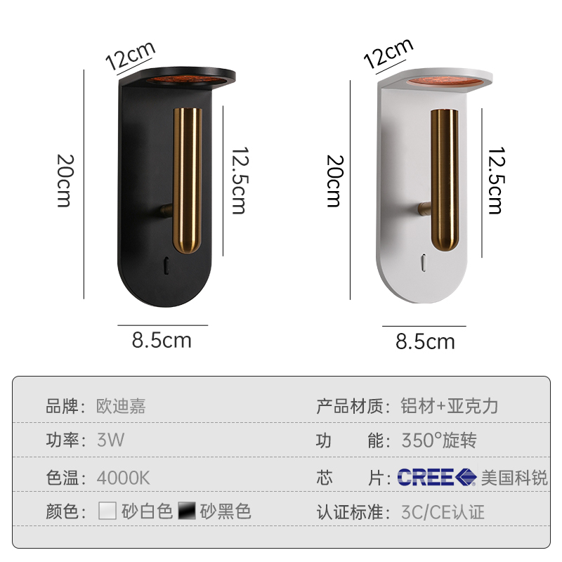 Black - 3W-4000K White - 3W - 4000K