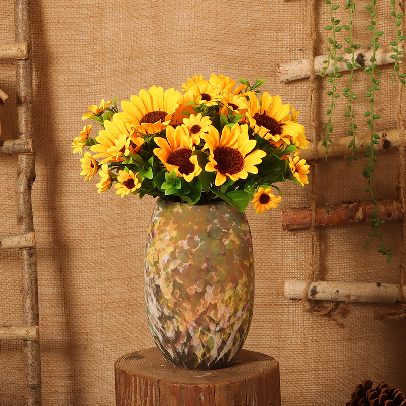 Pottery Jar Vase Sunflower Emulation Bouquet Living-room Table Fake Flower Pendulum Piece Decorated Flower Arrangement Adornment Retro Furnishing