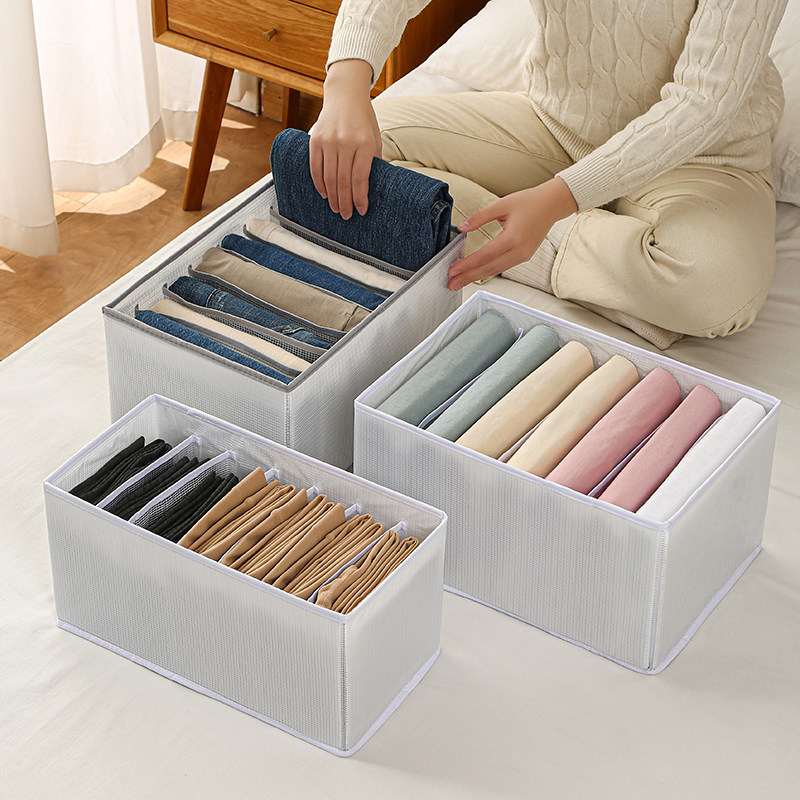 Clothing pants contain artifacts wardrobe layered jeans packing box drawer division pack clothes separate bag household
