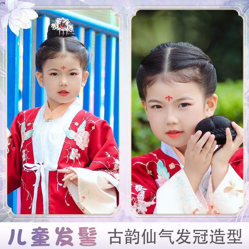 Children's ancient dress Hair Bag Girl Hair Accessories Wig Gufeng Hanfu Head Crown Hair Hair Style Ancient Horn Cushion Hair Styling