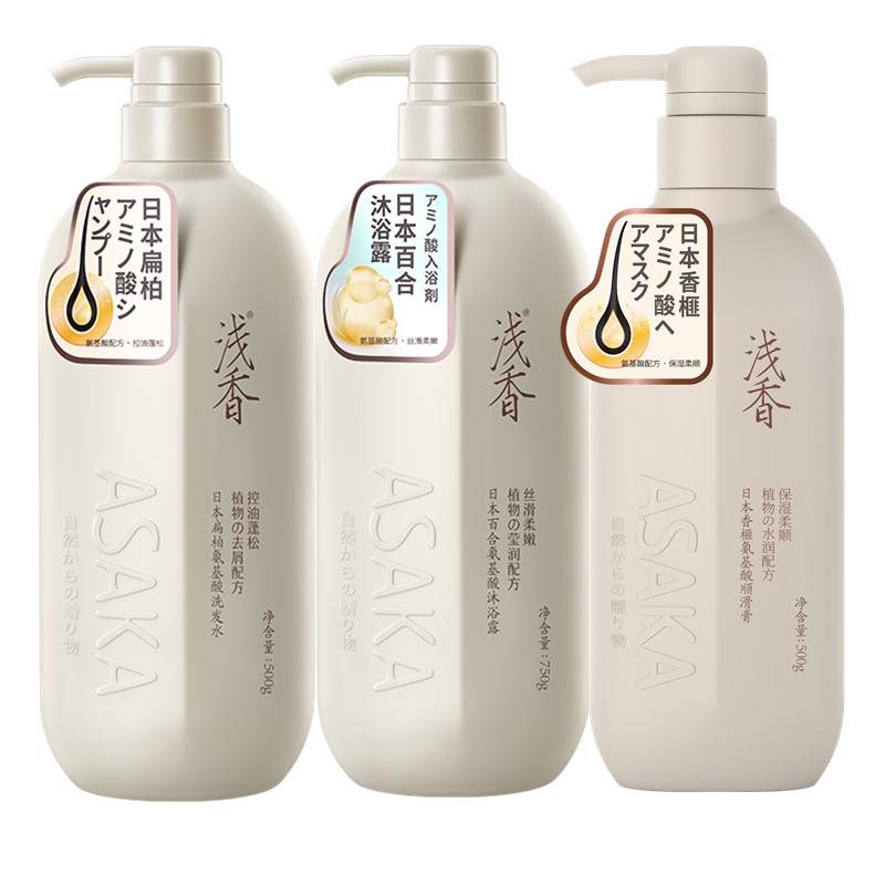 Japanese light fragrant cypress amino acid shampoo oil control dandruff conditioner shower gel three-piece family set to leave fragrance