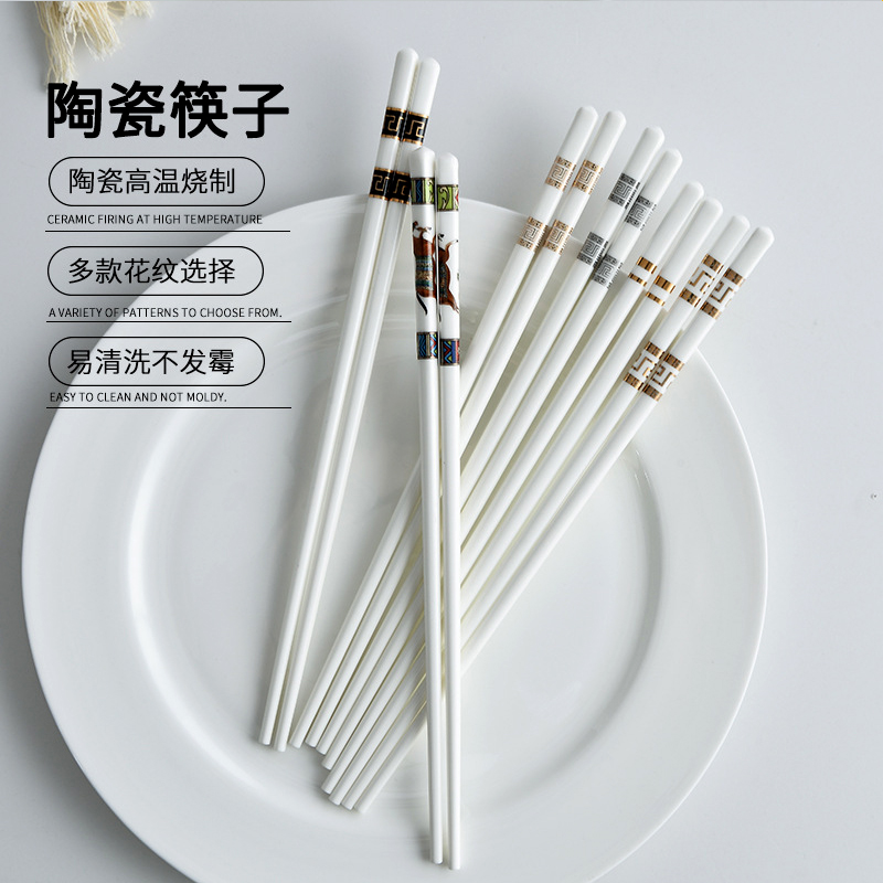 5 pairs of 10 pairs of ceramic chopsticks Jingdezhen household high-grade mildew-proof healthy high temperature resistant deformation easy to clean non-slip