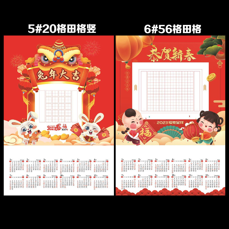2023 Hard Pen Calendar Calendar A3 Calligraphy Paper dedicated blank plate 56 Tiger Diy 20 square