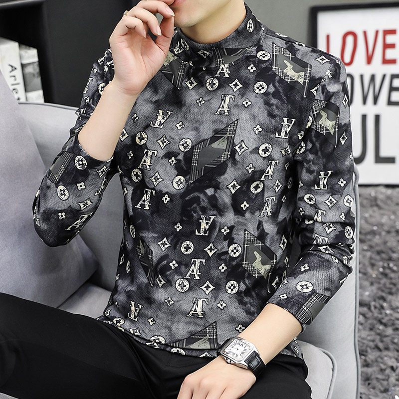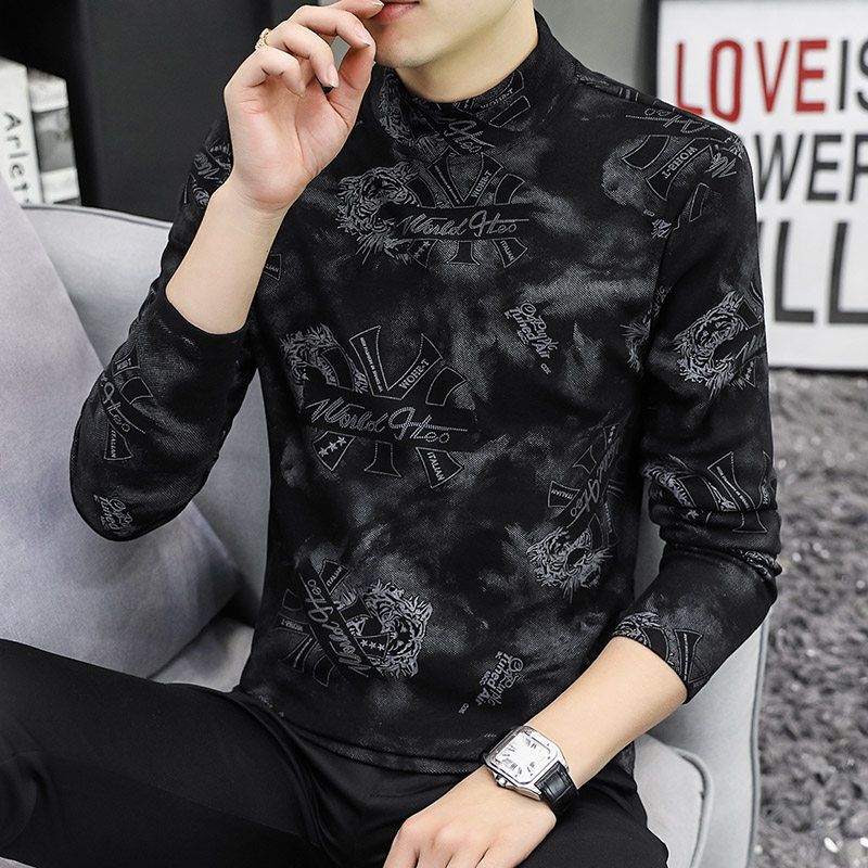 Middle-collar bottom-shirt Develvet fever clothes Men's autumn clothes single-piece blouses can be outworn Young students trendy fashion