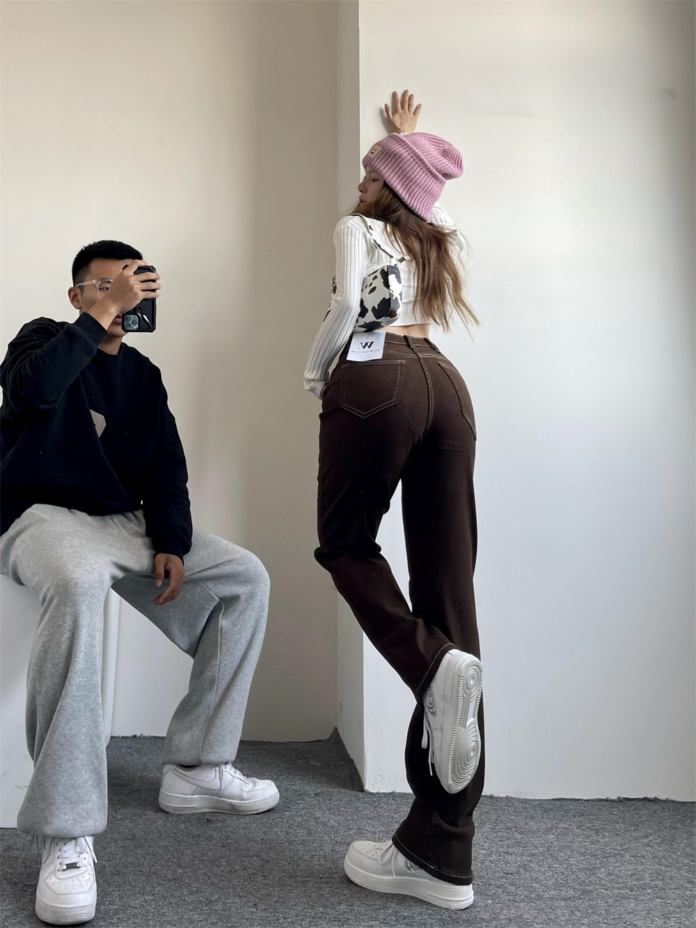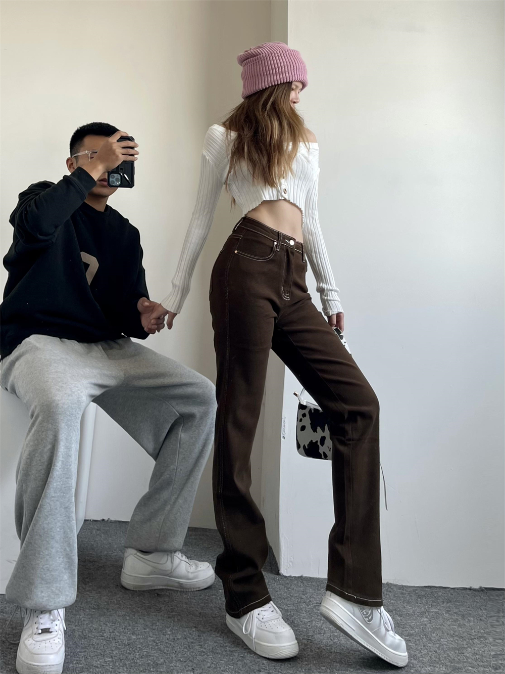 Renaissance personality palm coffee trawler jeans female soft bomb baby straight pants