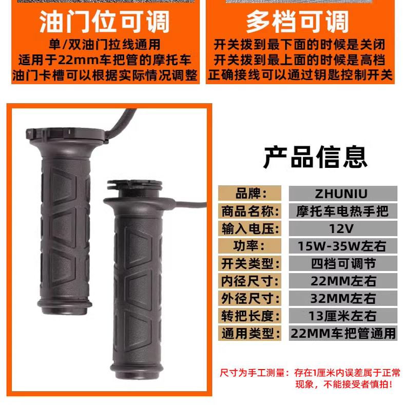 ZHUNIU motorcycle electric heated handlebar adjustable temperature modified heated handlebar cover pedal 22mm universal waterproof 12V