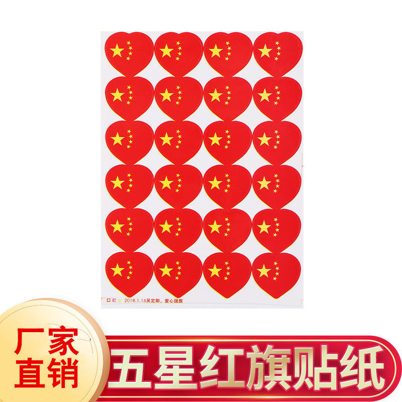 Red Flag Sticker Sticker Loving Little Flag Face Sticker Kindergarten Children Student Sticker clothing Decorative Label Waterproof
