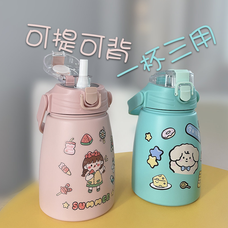 The new water cup 2022 new cup of red male students and girls to school special large capacity straw cup