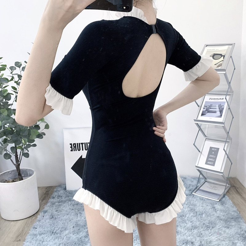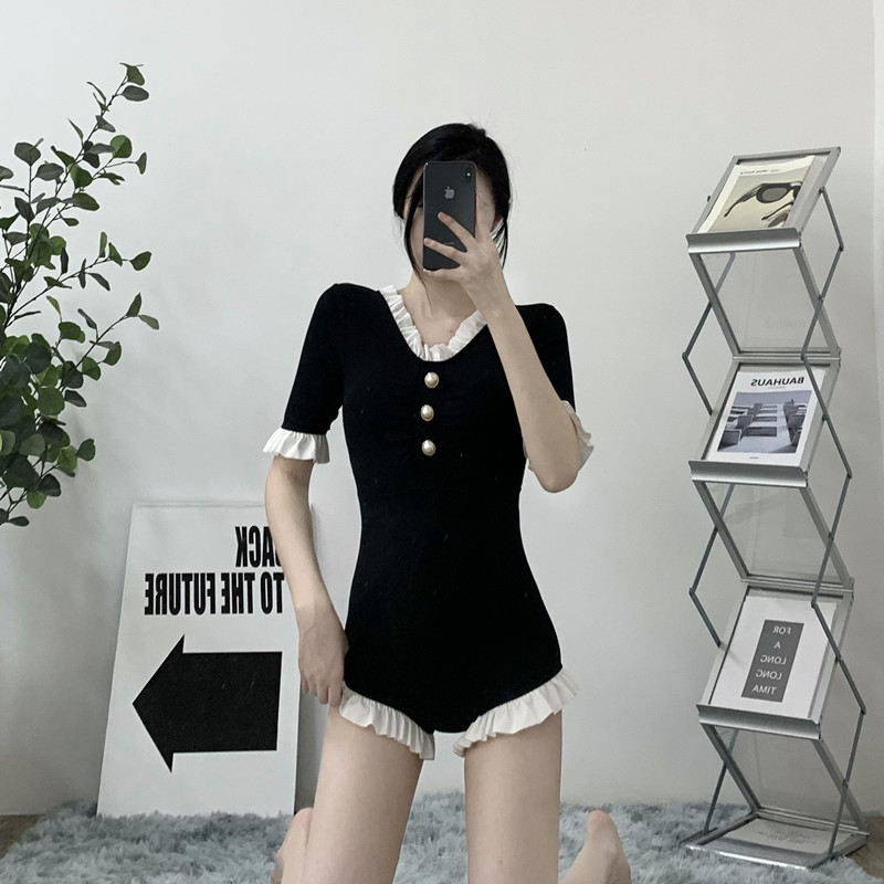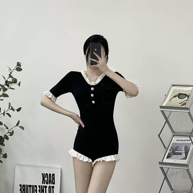Pure - desired swimsuit female summer 2022 new black and short - sleeved short - sleeved, small corner conservative student swimsuit