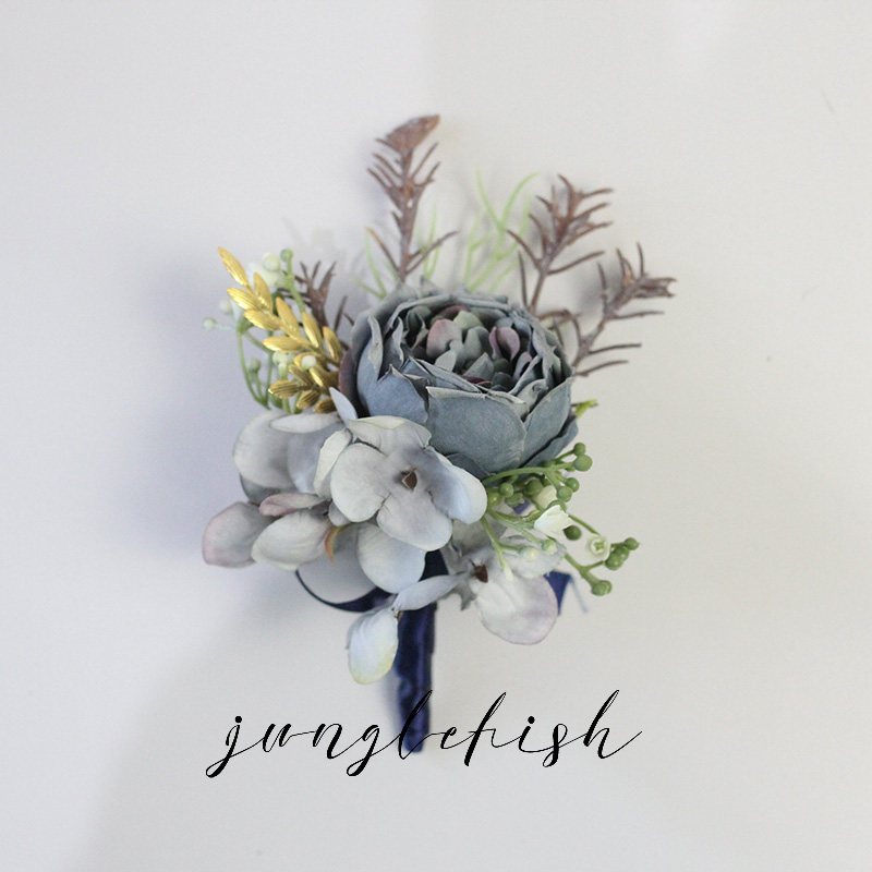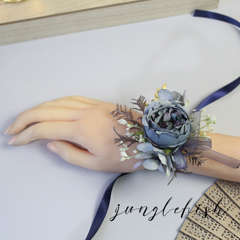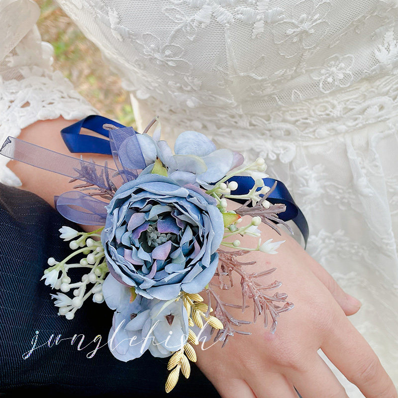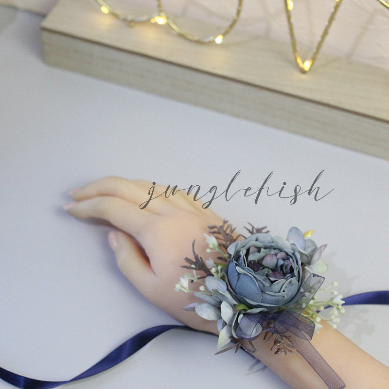 Autumn and winter gray blue corsage wrist flower parents corsage bridesmaid sisters best man hand flower wedding photography commercial exhibition