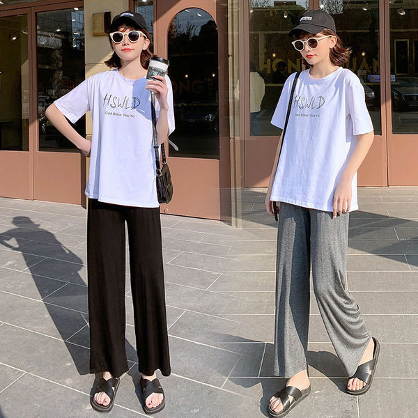 Pregnant women summer thin nine - minded pants complete a loose broad leg belly wear long pants and fat MM 200 pounds