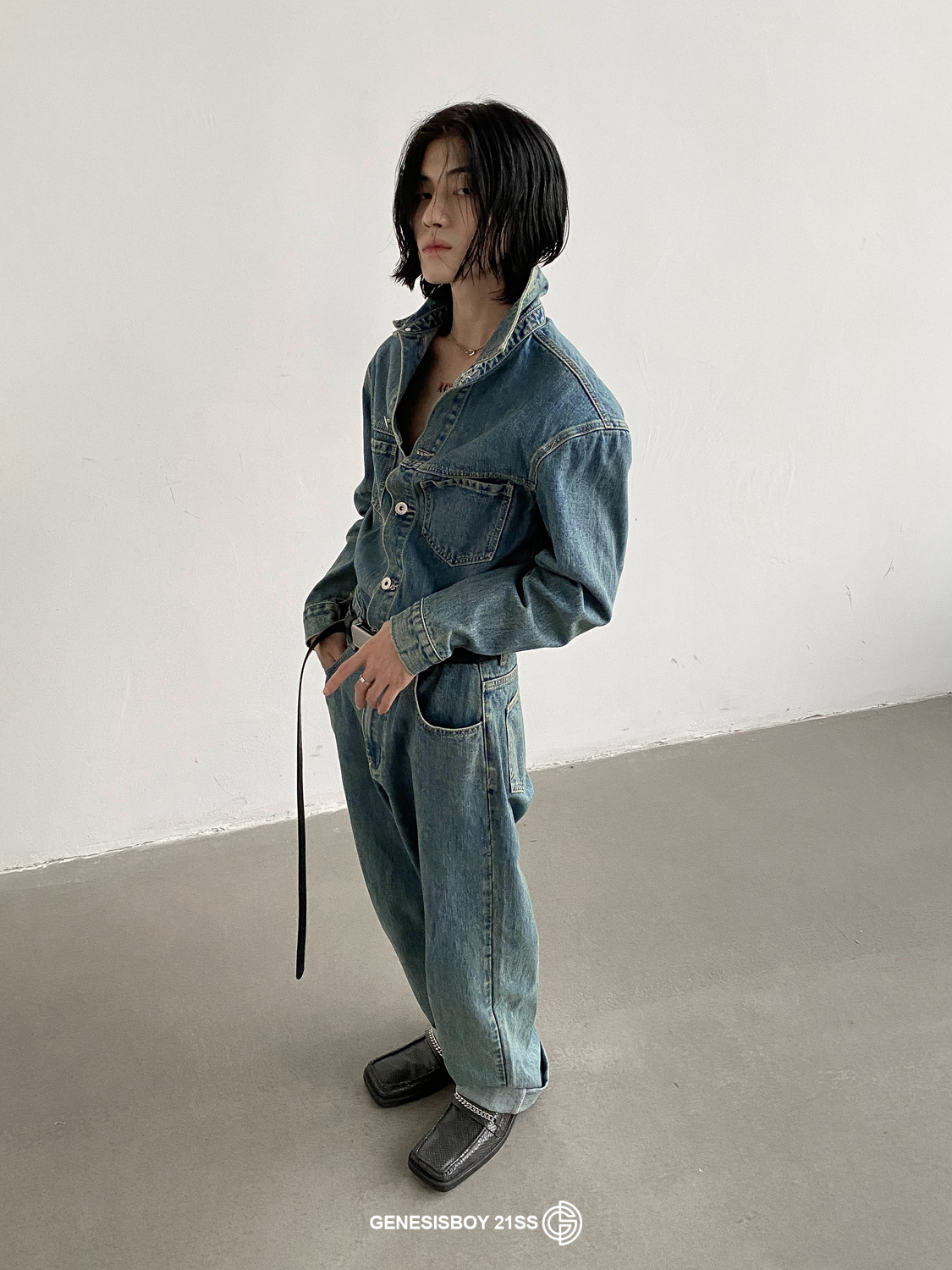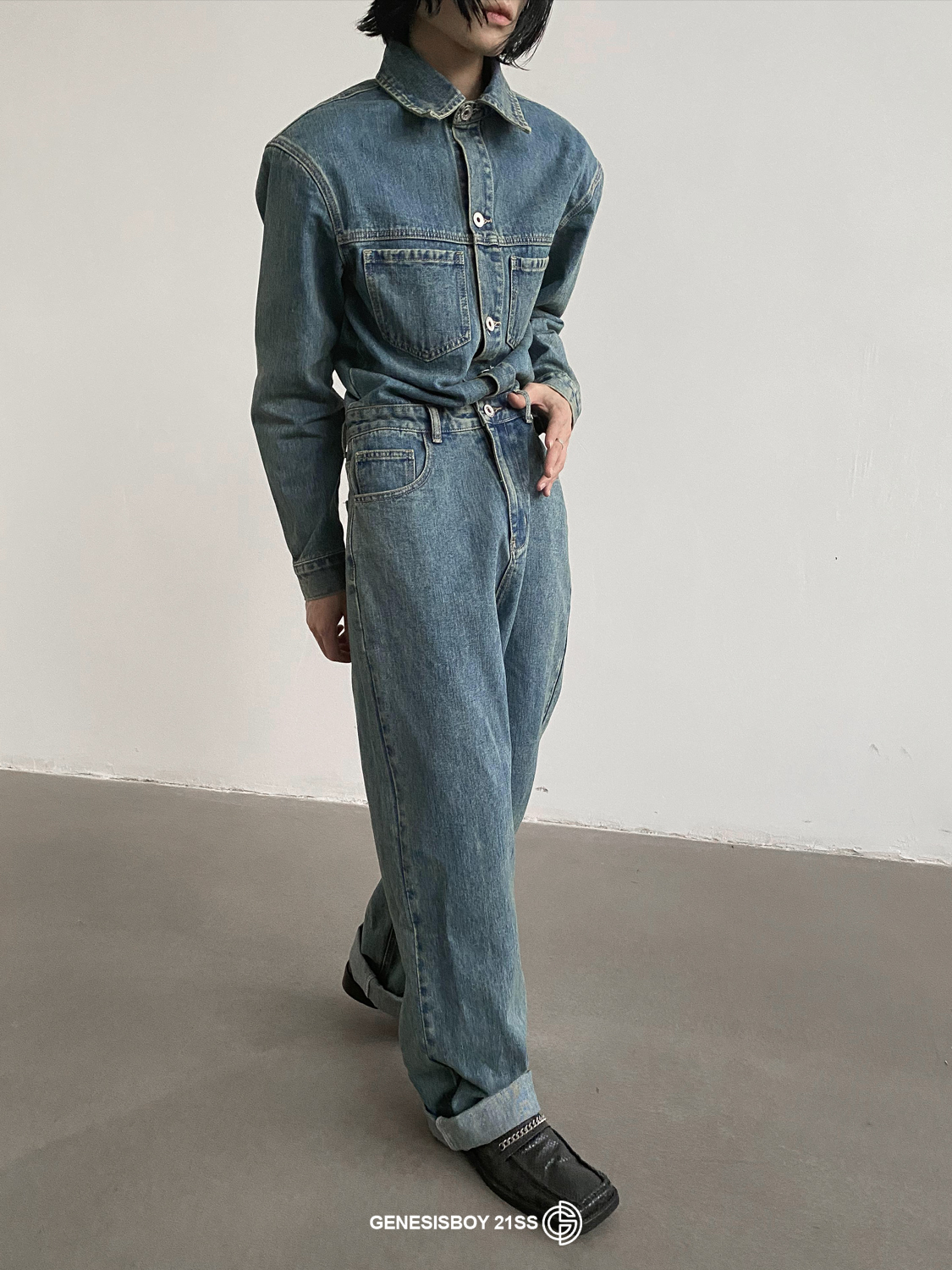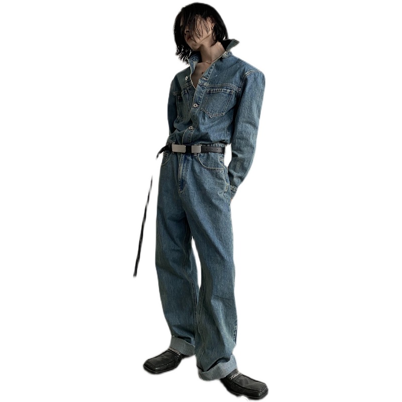 GENESISBOY12 12AM00:00] Little crowddesign Advanced sense padded shoulder long sleeve denim pair of pants male and female