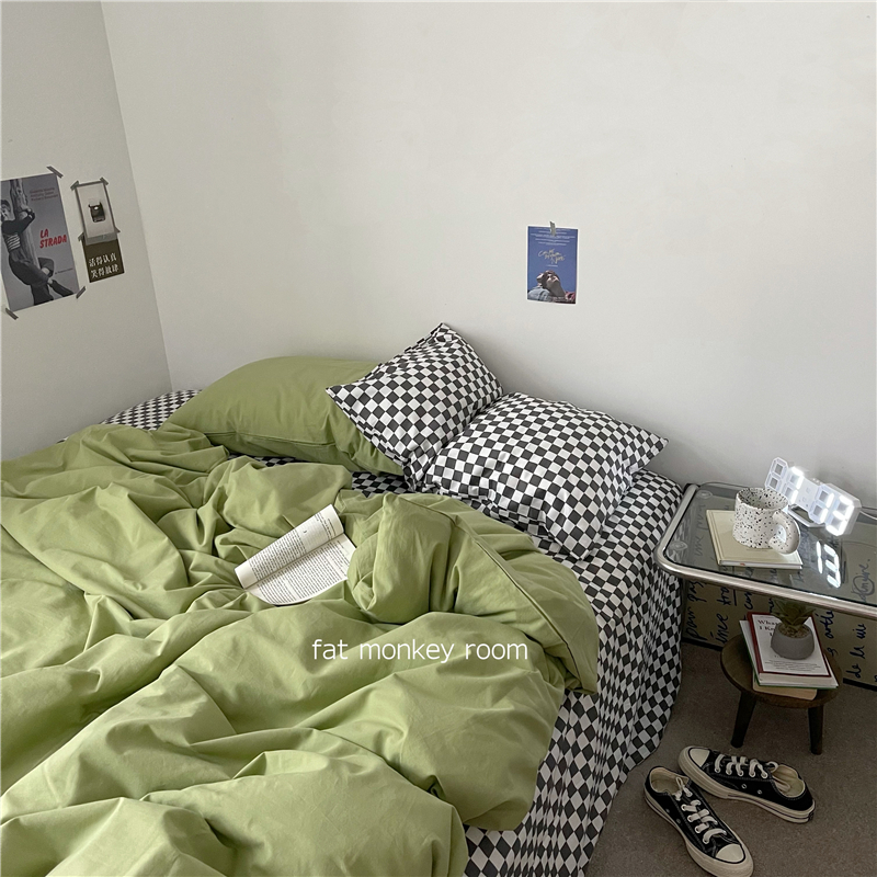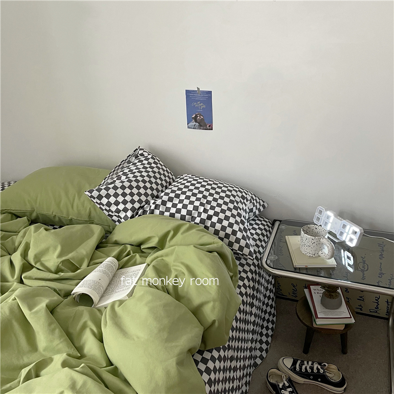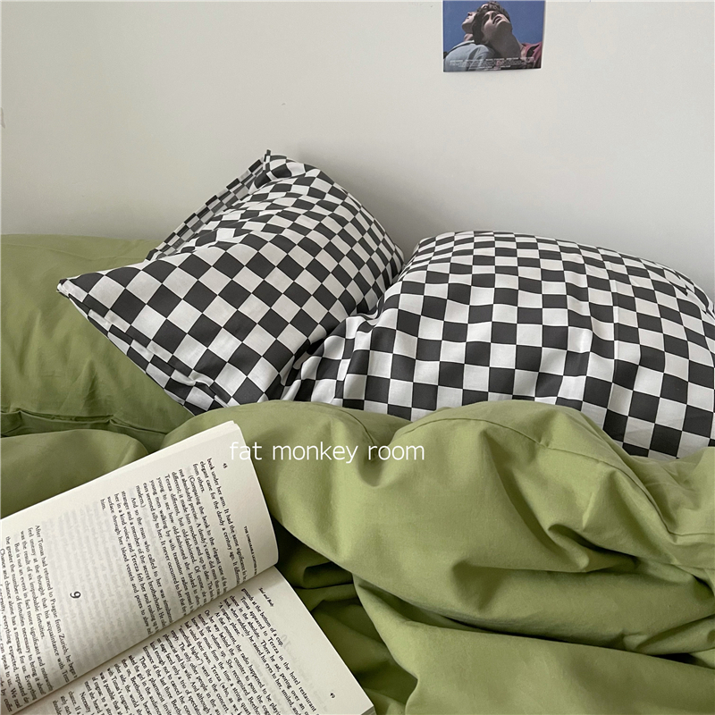 The postman always rings the bell twice|ins Japanese checkerboard mix and match cotton combed and washed cotton bedding set of three or four