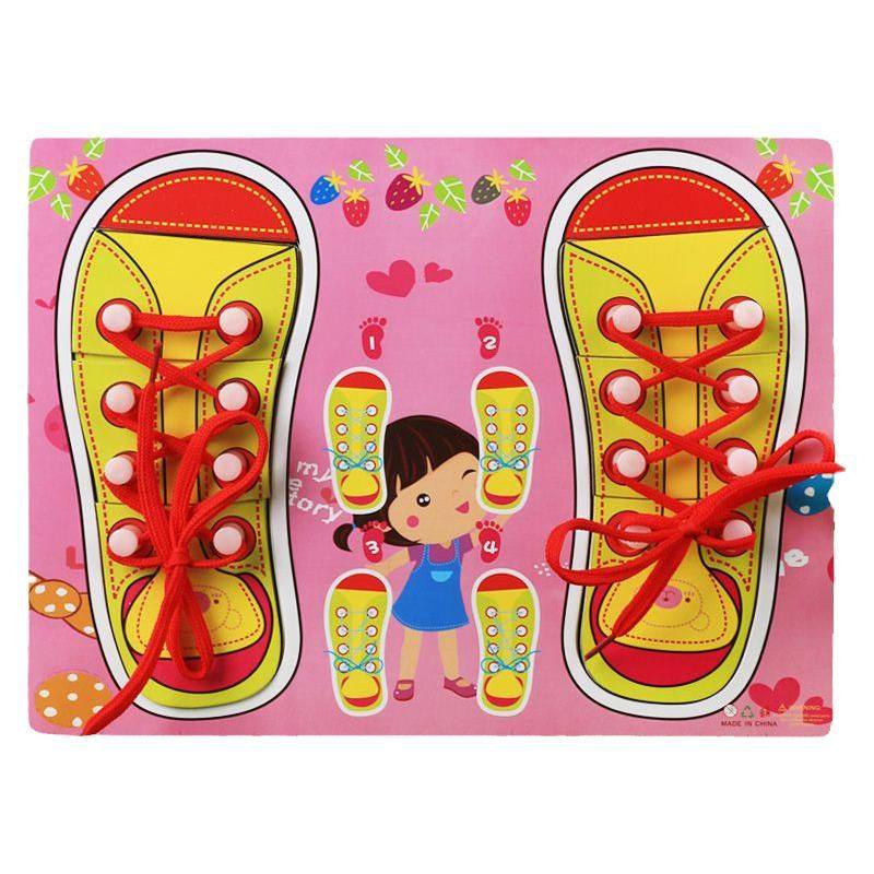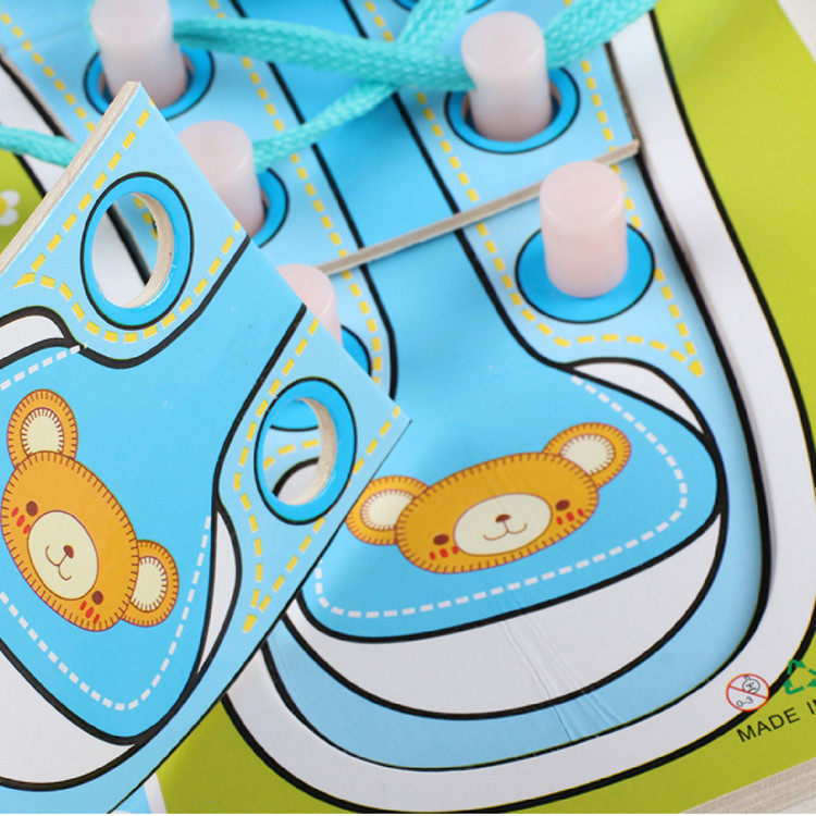 Blue laces two shoes Pink laces two shoes Log color three shoes Puzzle threading button (with title card)Men's clothing shoes threading Women's clothing shoes threading Multifunctional shoes 1 wooden shoe