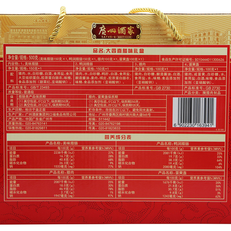 Guangzhou wine family Zhengzong Guangdong Guangdong-salami Meat Gift Box Year Goods Group Purchase Holiday Delivery Hand Letter Wholesale Shunfeng