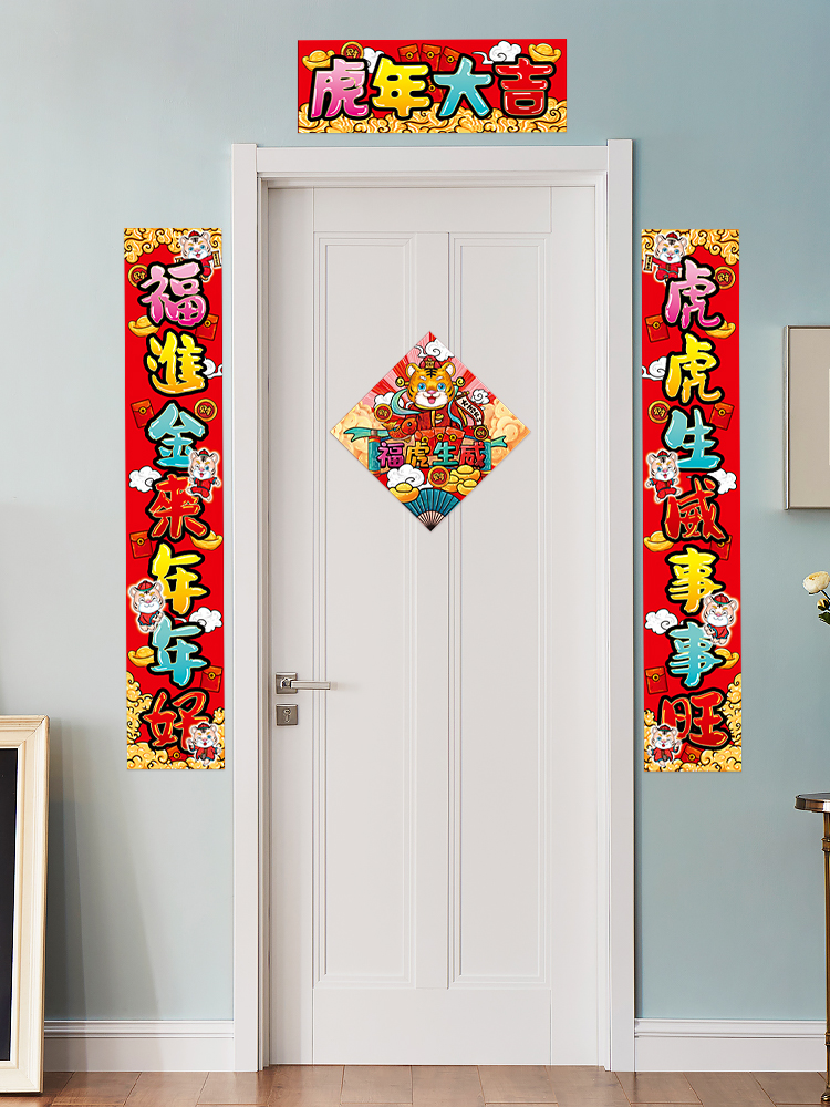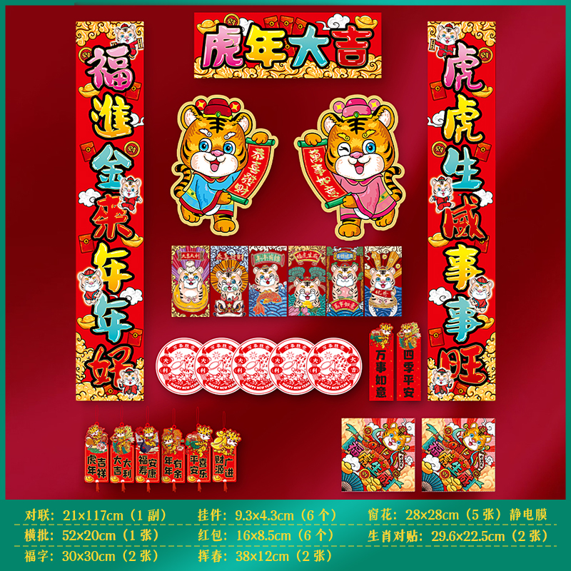 2022 couplets for the Spring Festival Home Tiger New Year's New Year Creative Chinese New Year Spring Festival Gift Bags Spring Couplets Cartoon Suit Fu Character National Tide