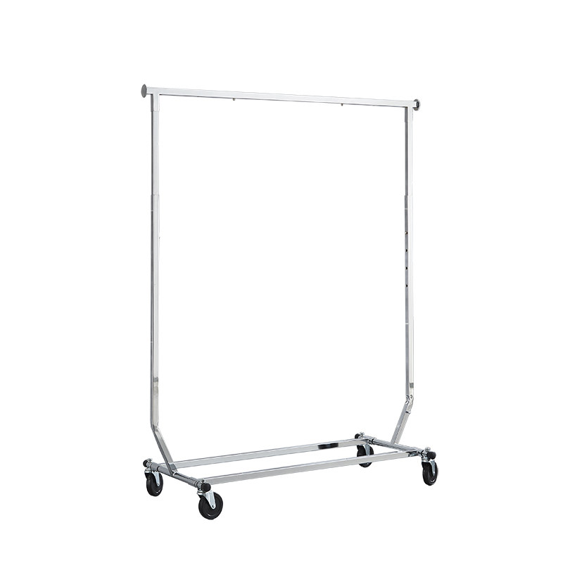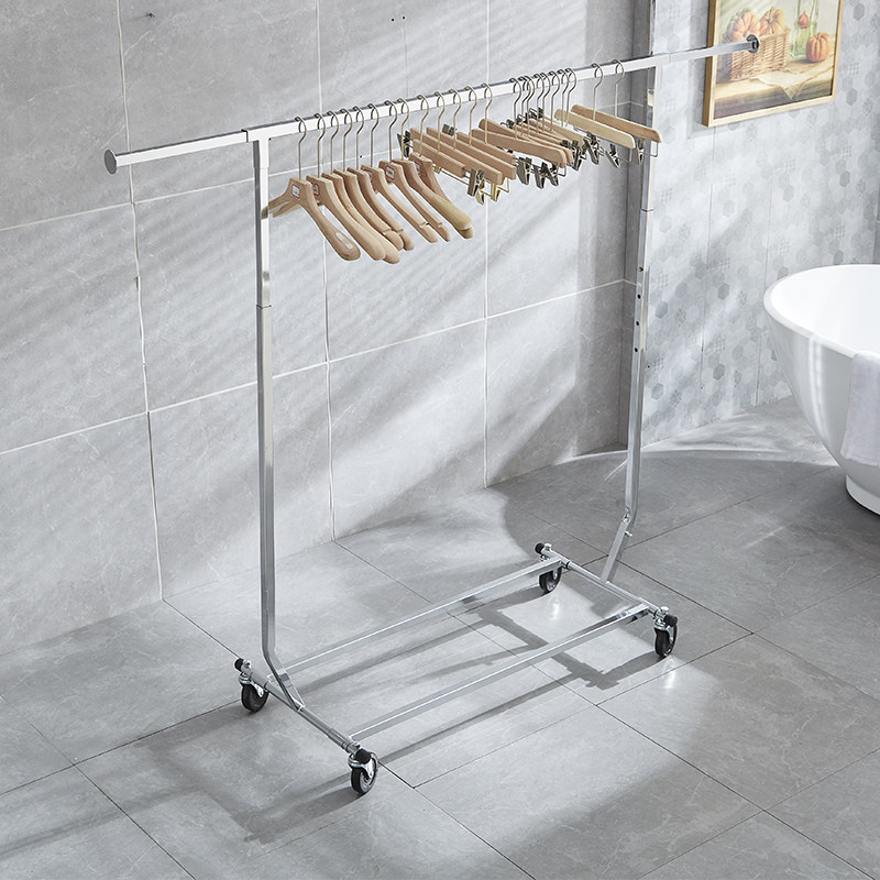 Clothing Store Hanger Racks Stainless Steel Square Pipe Single Bar With Wheels Folding Movement Hanging Hanger Exhibition Sales crew
