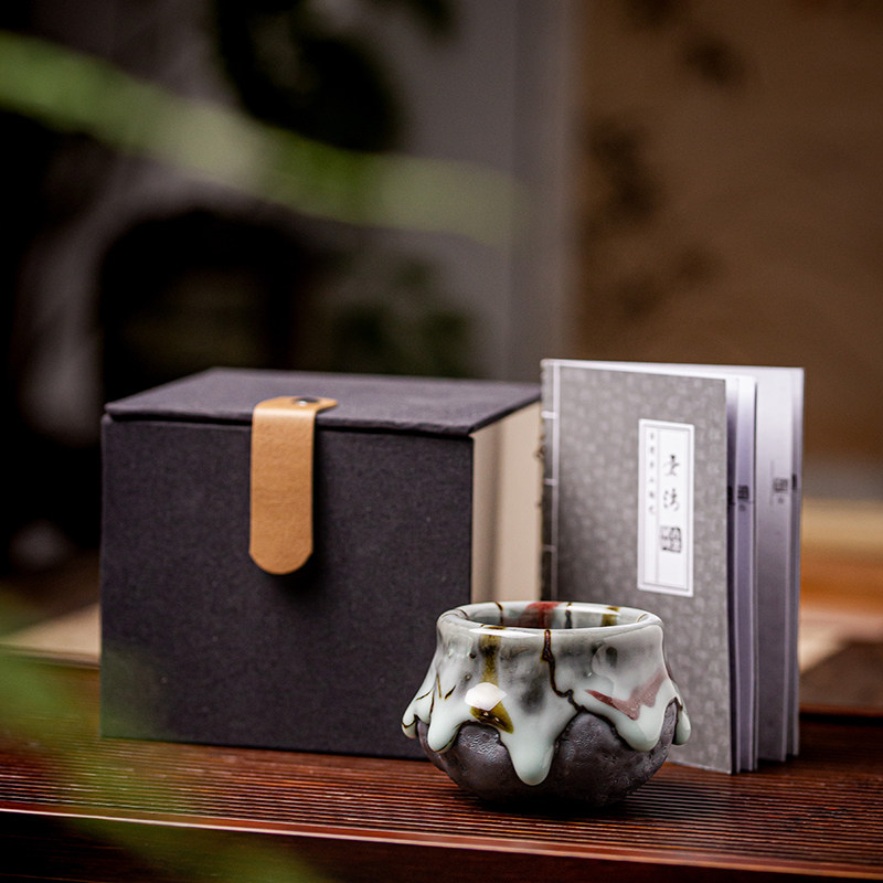 Taiwan Zhiye burning master cup Tianmu agate flow glaze tea cup home ceramic kung fu tea set rough pottery firewood single cup