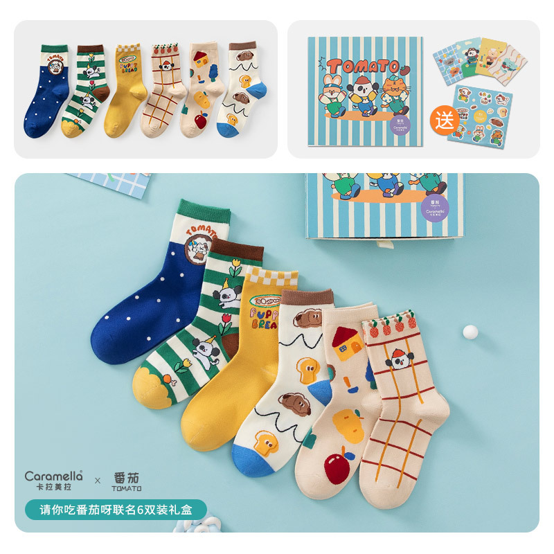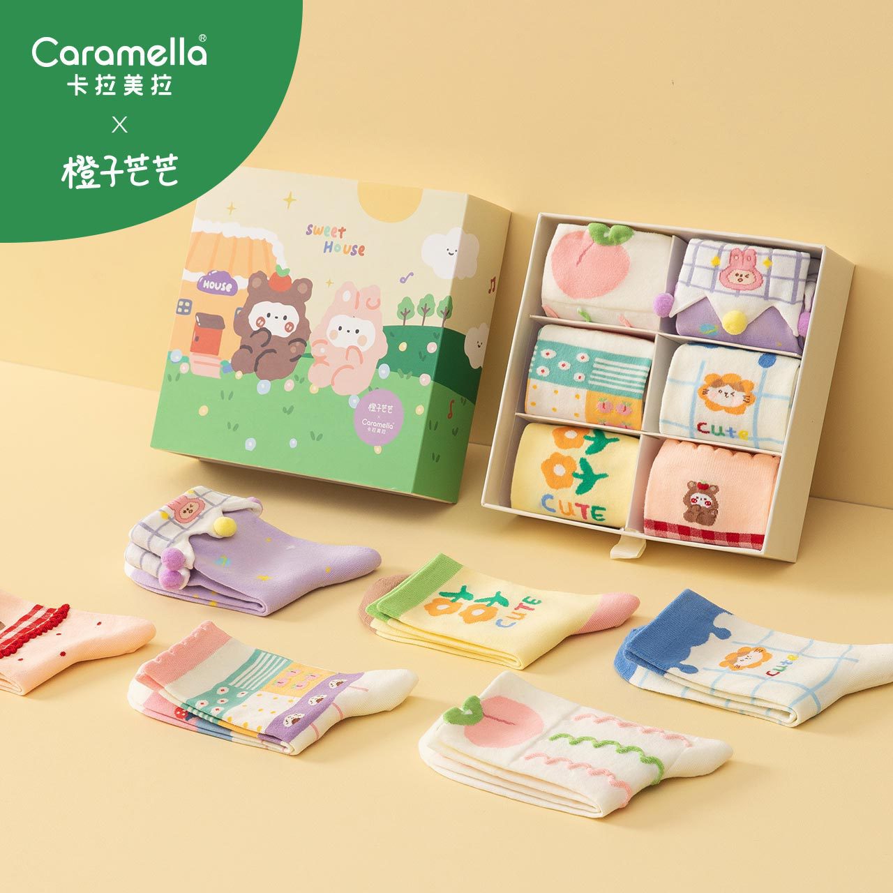 6 Double gift boxed Caramella Sox children Sox autumn winter ladies Sox ins Cartoon Chains Cartoon College Wind Cotton Socks-Taobao