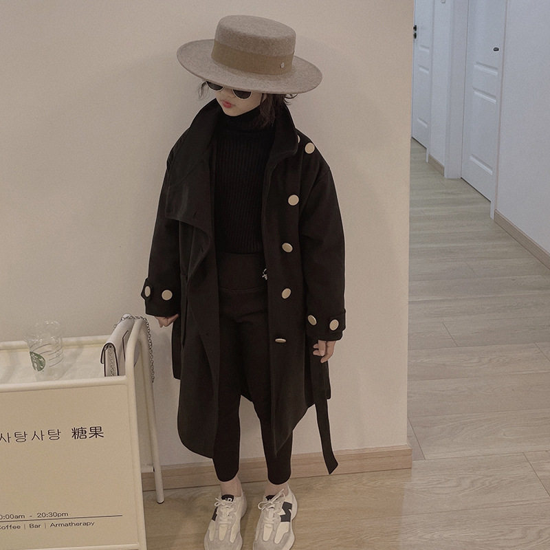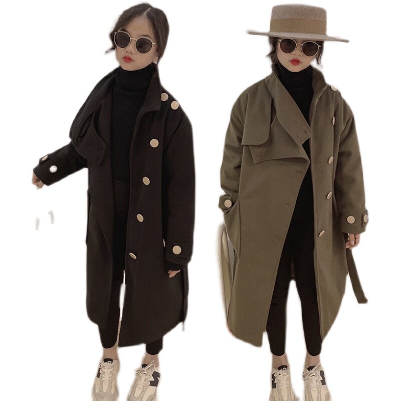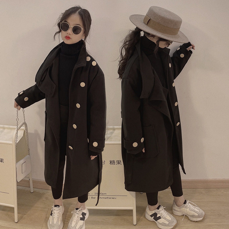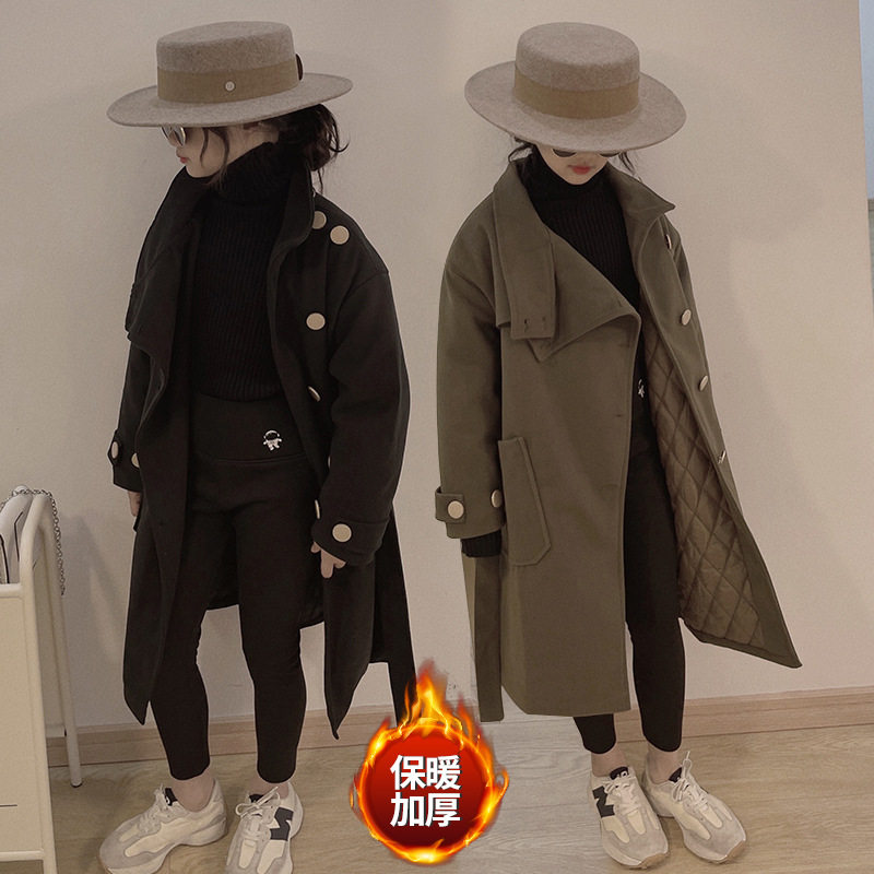 Girl girl plus cotton thickened, great coat of clothing for autumn and winter 2021 new Korean version CUHK children long version of the wind coat warm coat