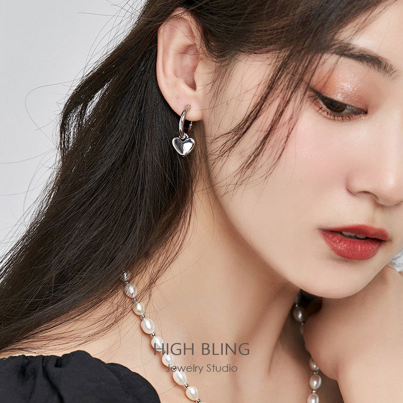 Japan and South Korea sweet and cool silver metal ring love silicone mosquito coil ear clip simple no pierced female earrings silver needle simple