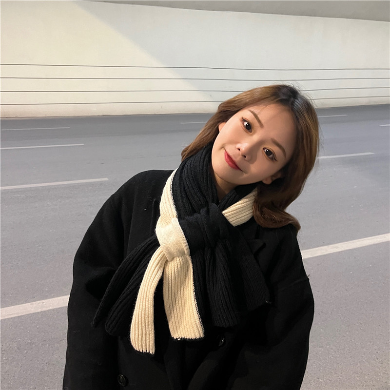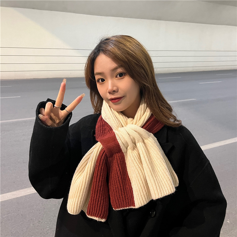 Japanese autumn and winter color matching scarf female Korean version retro niche all-match student knitted cross scarf thickened to keep warm