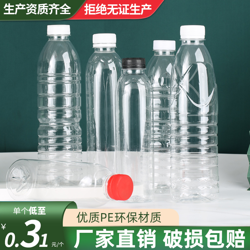 Mineral water bottle empty bottle 500ml transparent plastic bottle thickened with lid disposable PET food grade beverage bottle