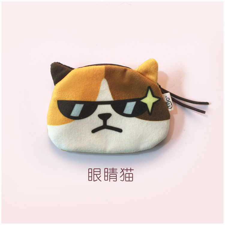 Cute Cat Face Zero Wallet Expression Bag Zero Money Bag Creative Cartoon Key Bag Printed Plush Card Bag Headphone Bag Cute