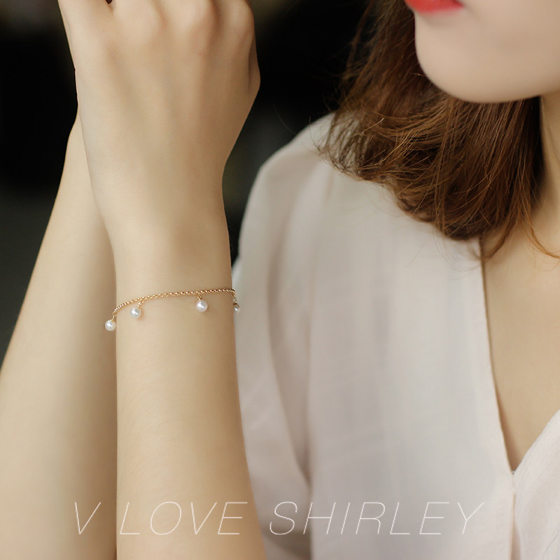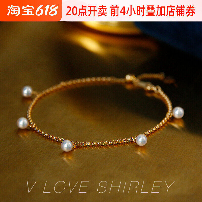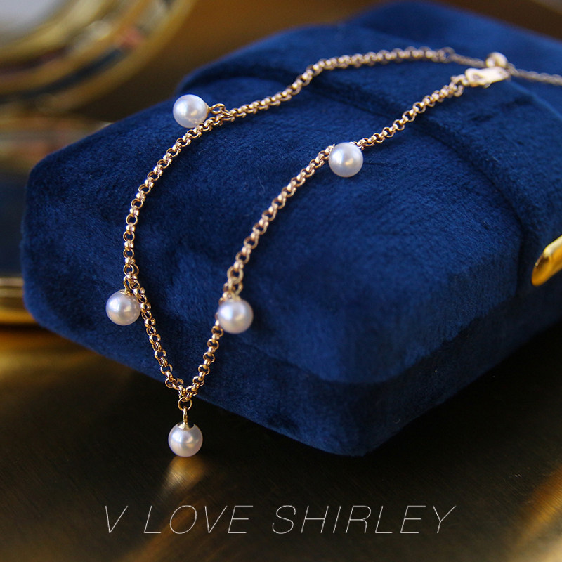 "Bell Hand Alchemy" Wei Love Show Beautiful Exclusive Akoya Sea Water Pearl Regulation Chain 18K Gold Bean Bean Hand Decoration Bracelet