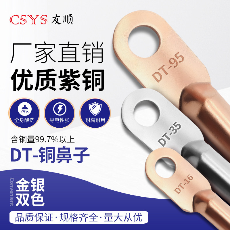 Copper terminal terminal terminal tinned copper connector wire nose DT10 16 25 50 95 120 square terminal