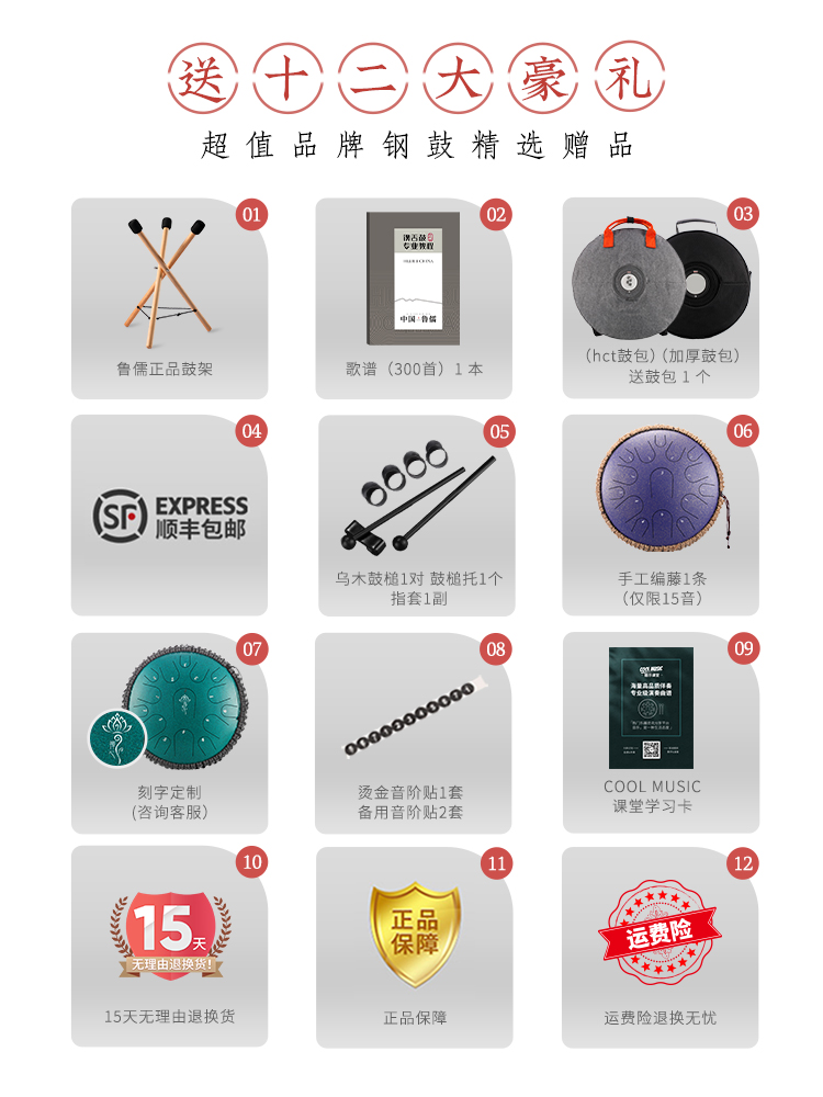 Hua Shu series free lettering and thickened drum kit upgrade with 13 inch 15 sound peacock send drum frame upgrade section 13 inch 15 tone black dazzling delivery drum frame upgrade with 13 inch 15 tone silver flower silver