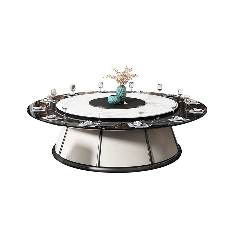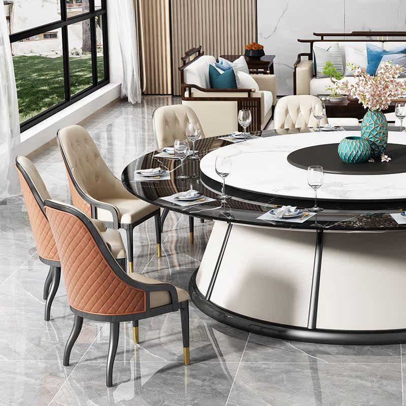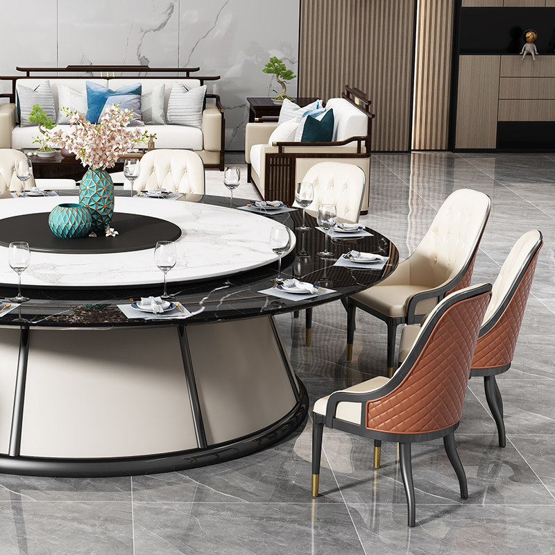 Hotel Dining Table Electric Big Round Table 12 People 15 People 20 People Hotel Hotpot Table New Chinese Home Bag Compartment Table And Chairs