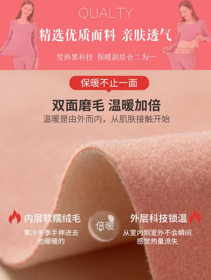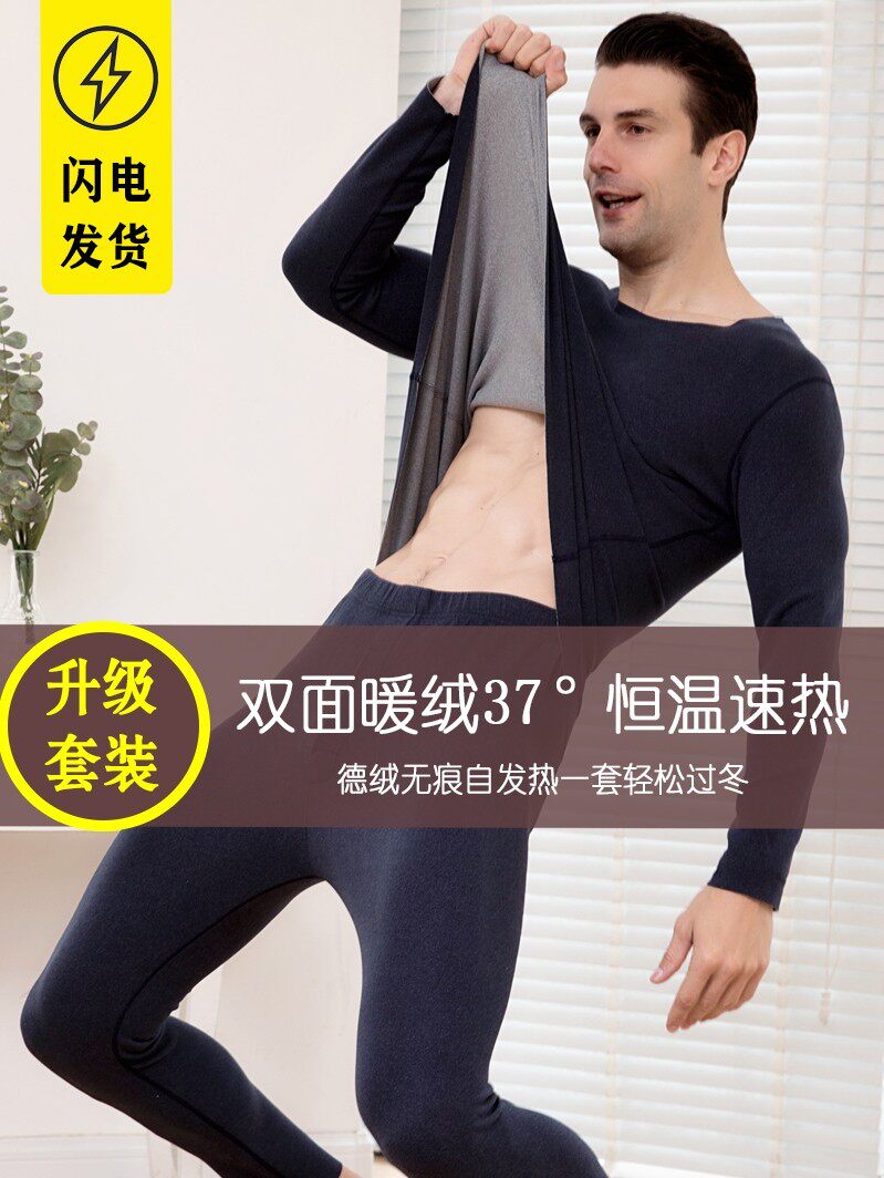 De velvet seamless heating underwear men and women plus velvet thickening constant temperature heating autumn clothes sanitary pants couple bottoming shirt