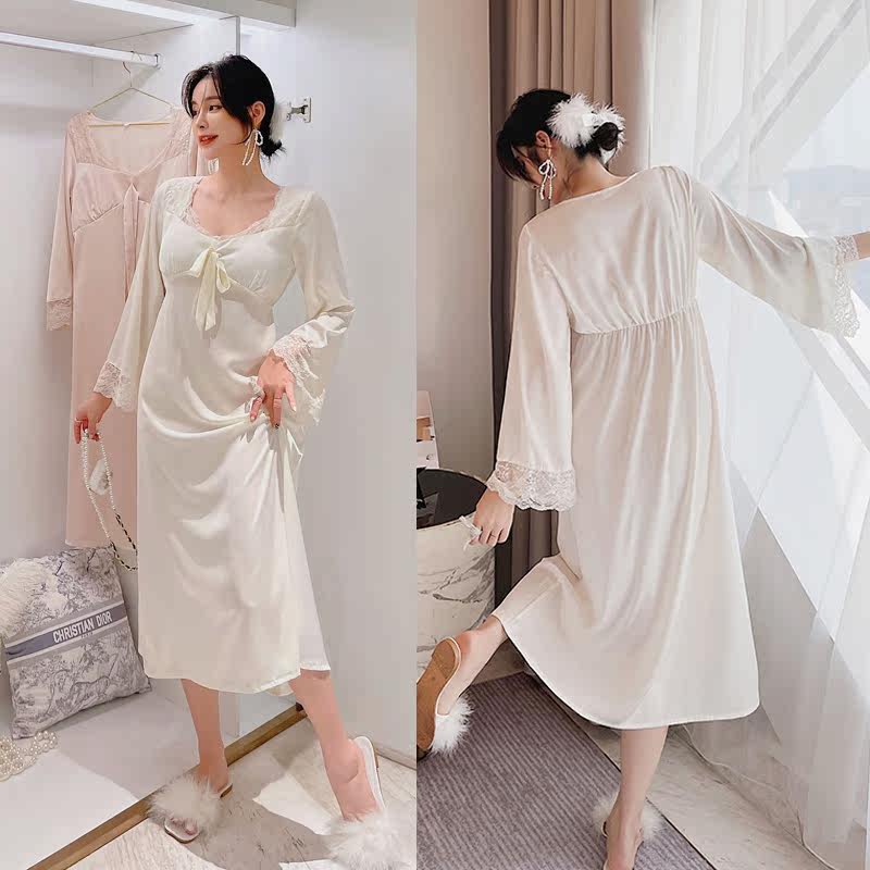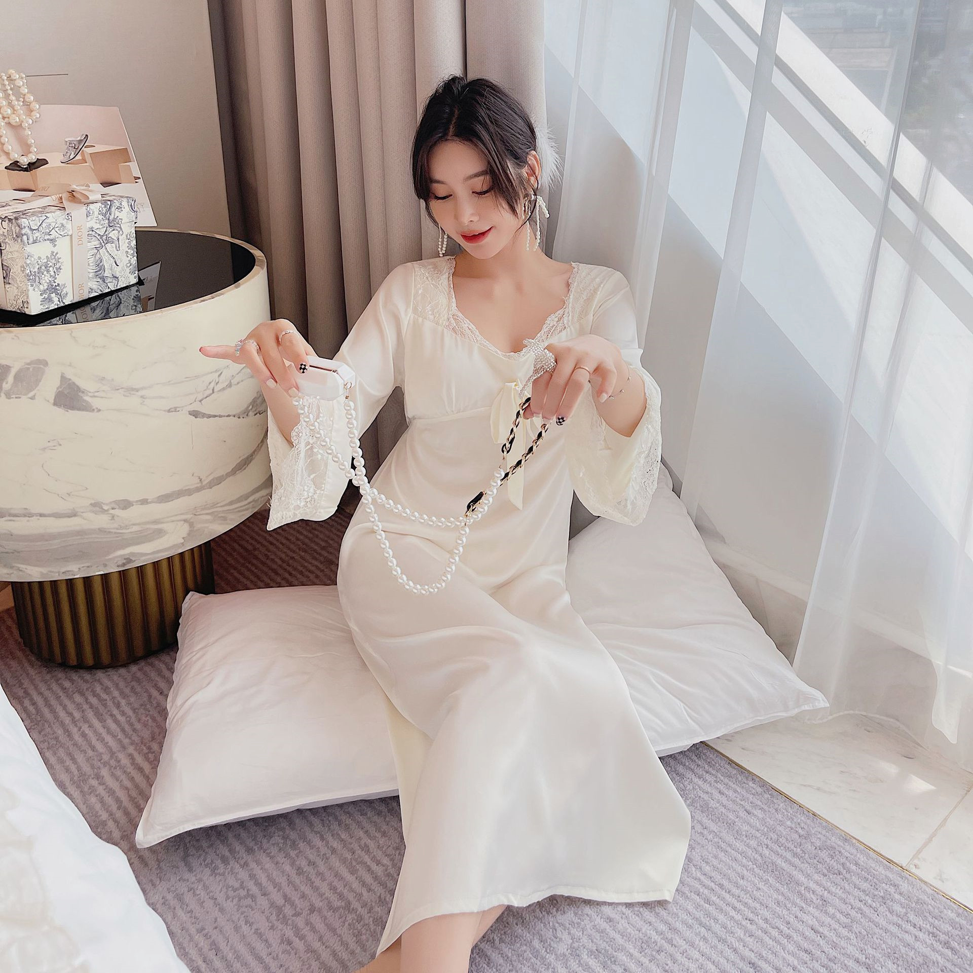 Silk pajamas women's spring and summer ice silk 2021 new Douyin net red hot style with chest pad long slim nightdress