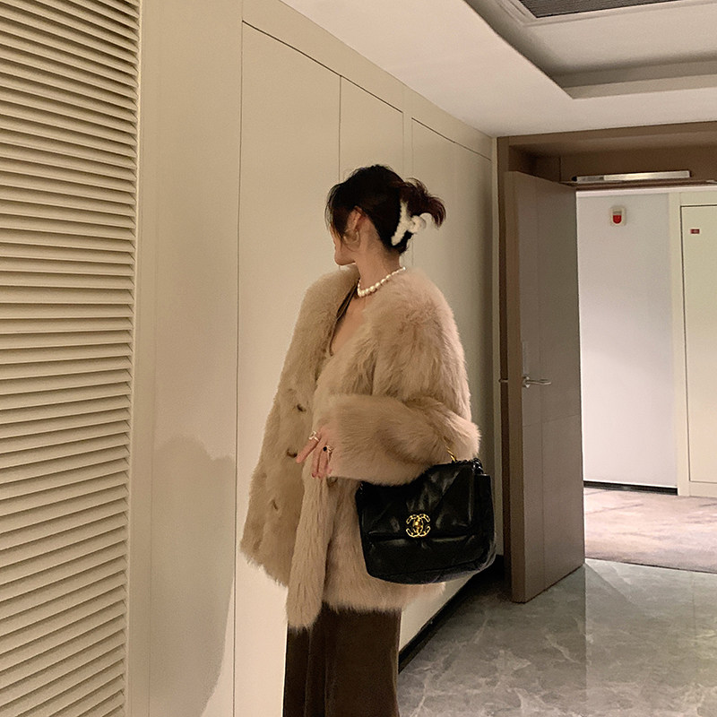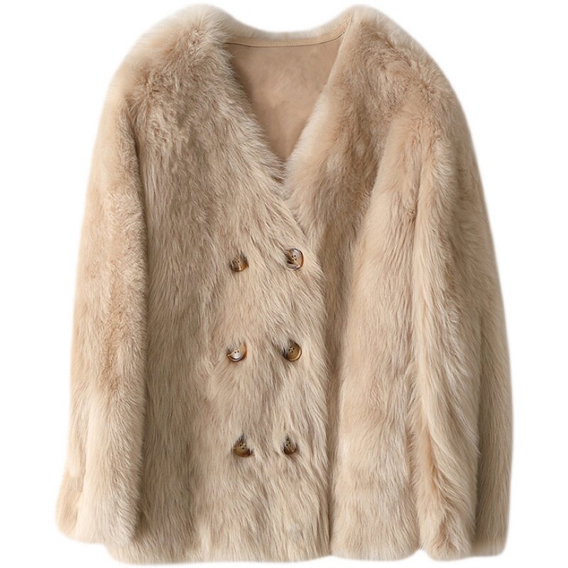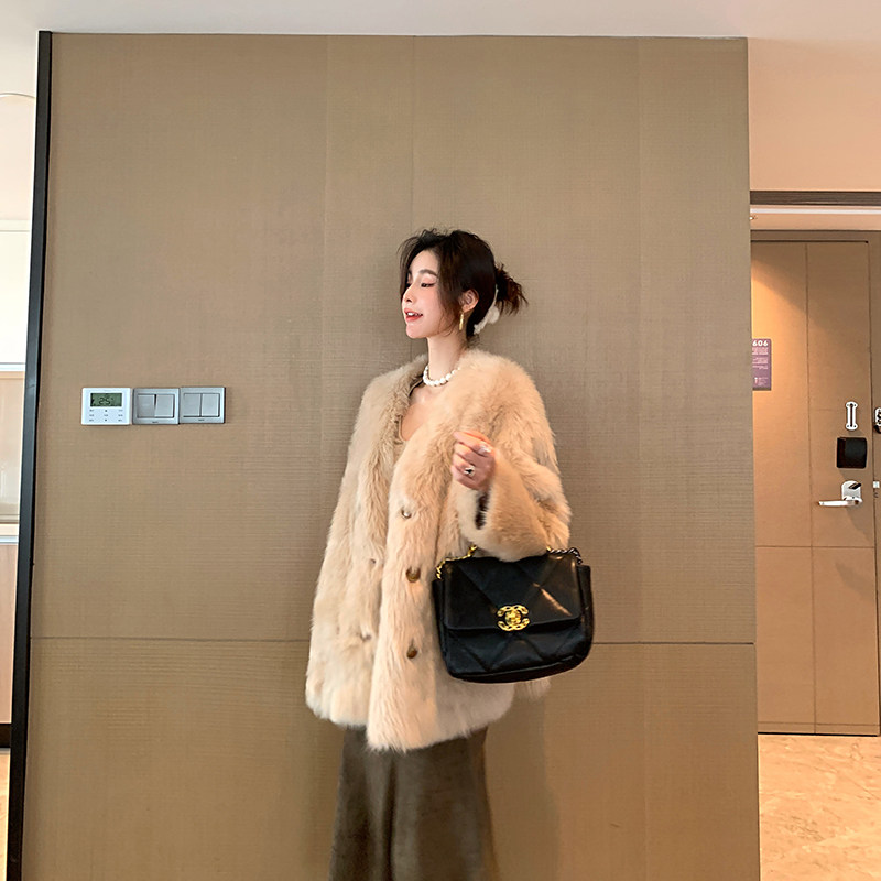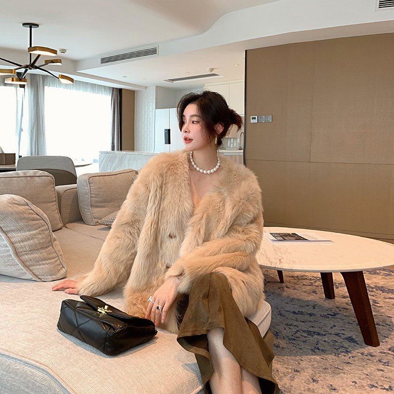 2021 Winter new fur integrated jacket Women's medium long version of SCana lamb fur fur coat young