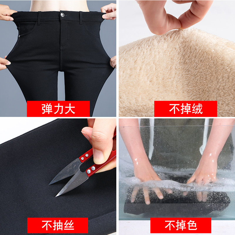 Special thick lamb plug pants in winter wear 2022 new high waist slim black small feet plus thicken cotton pants