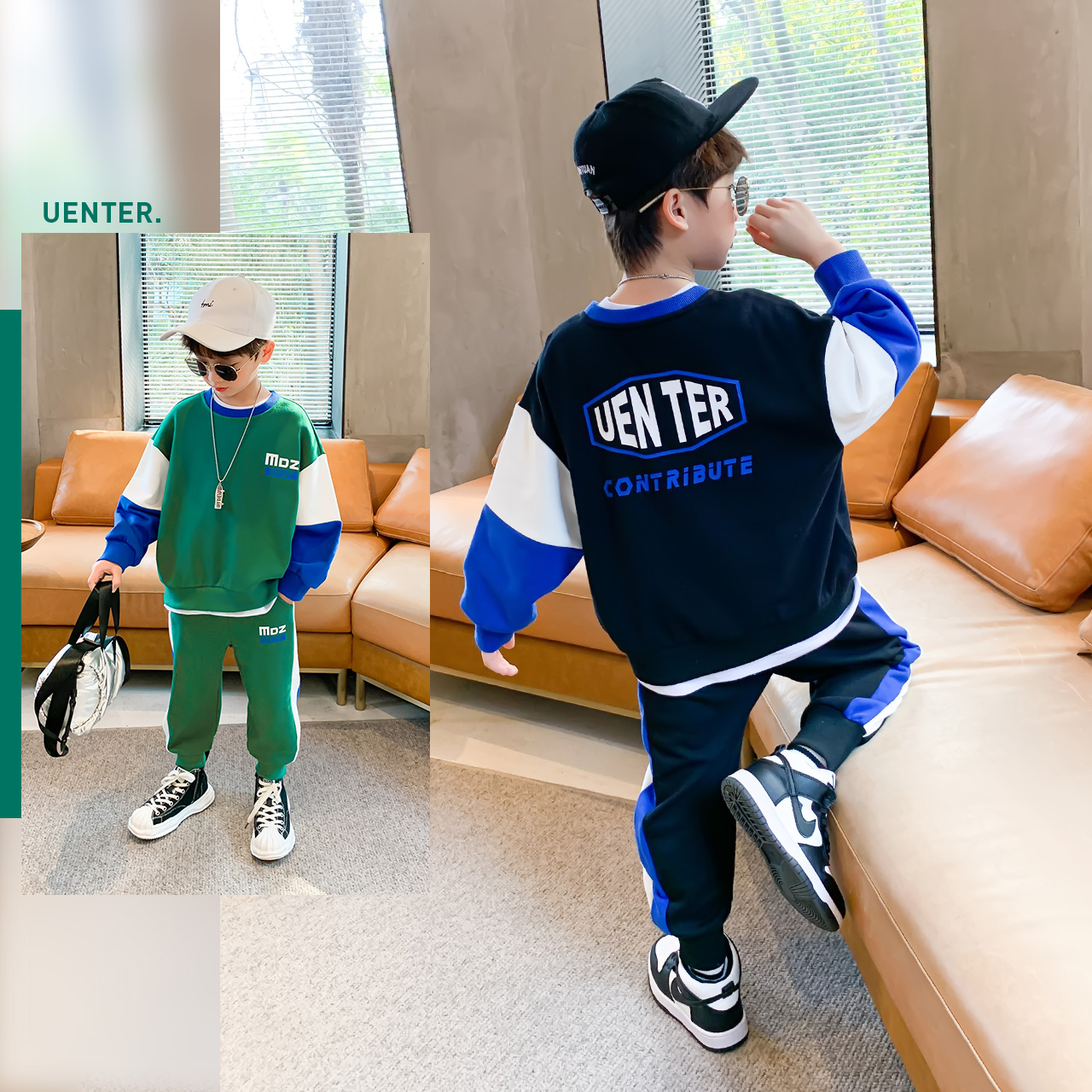 Left West Boy Suit Autumn Clothing 2022 New Boy Big Boy Handsome Sportswear Two Sets of Tide Card Children Clothing