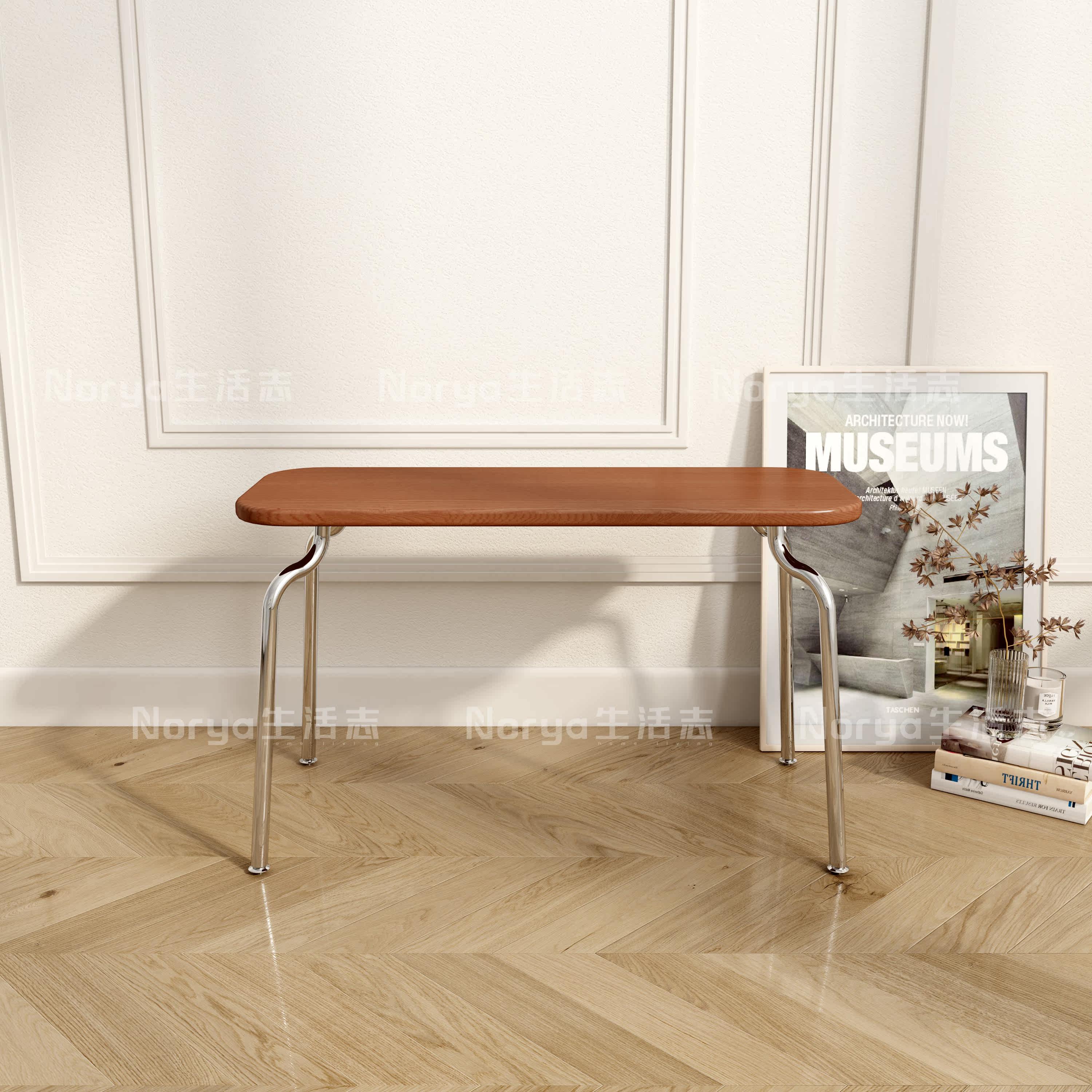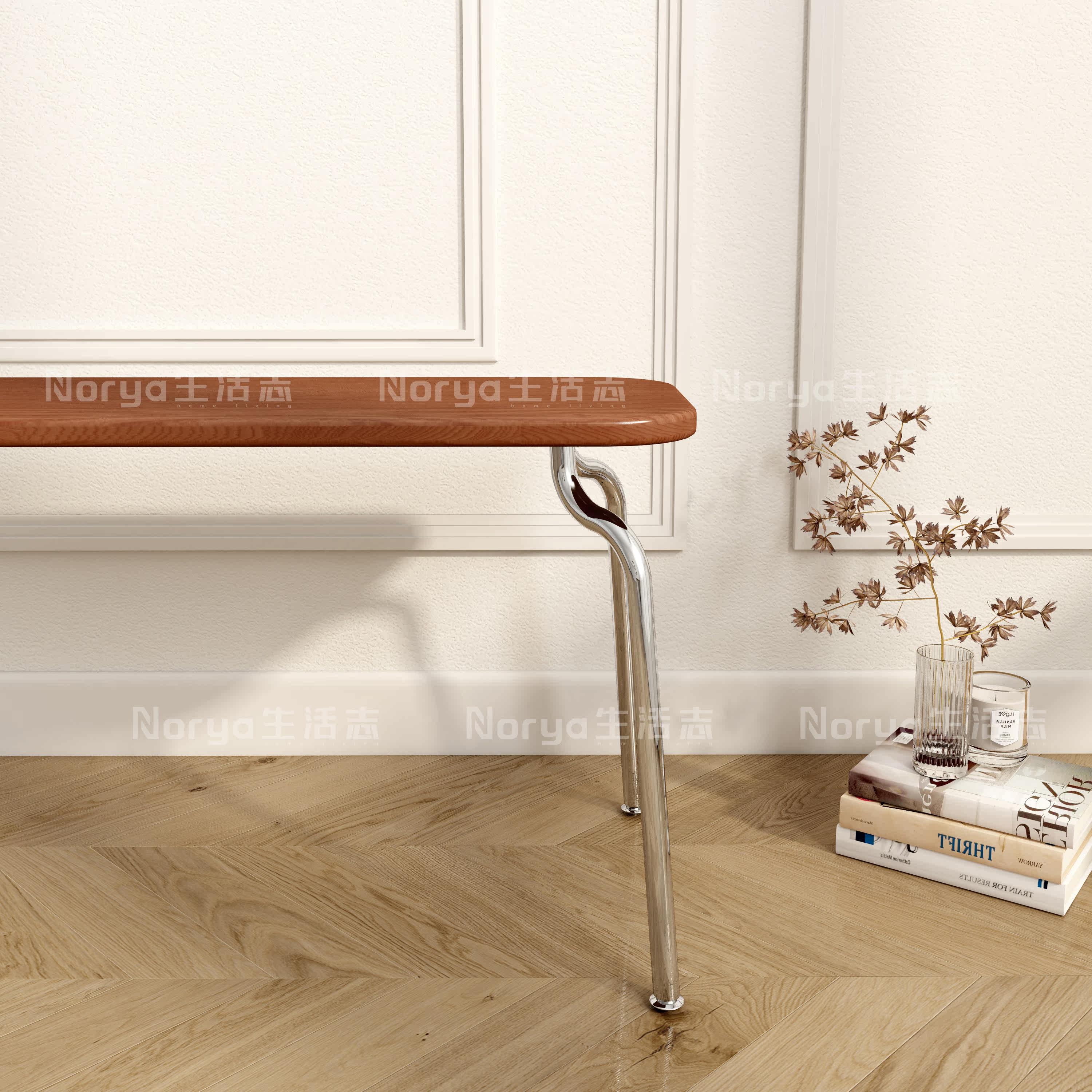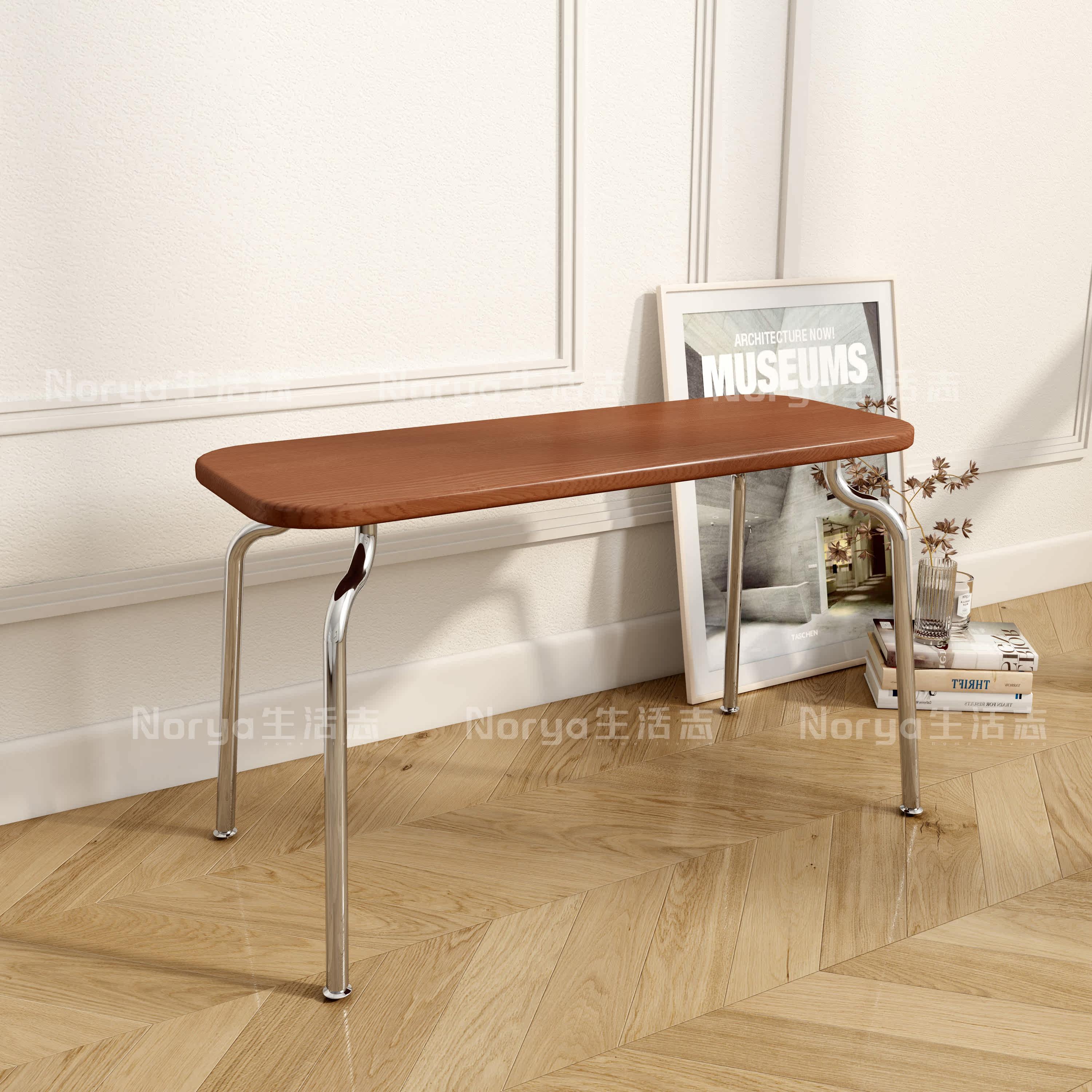 Nordic minimalist stainless steel solid wood Ant stool Home Xuan Guan Changing Shoes stool Bedroom Makeup Extremely Simple Creative Long Chair