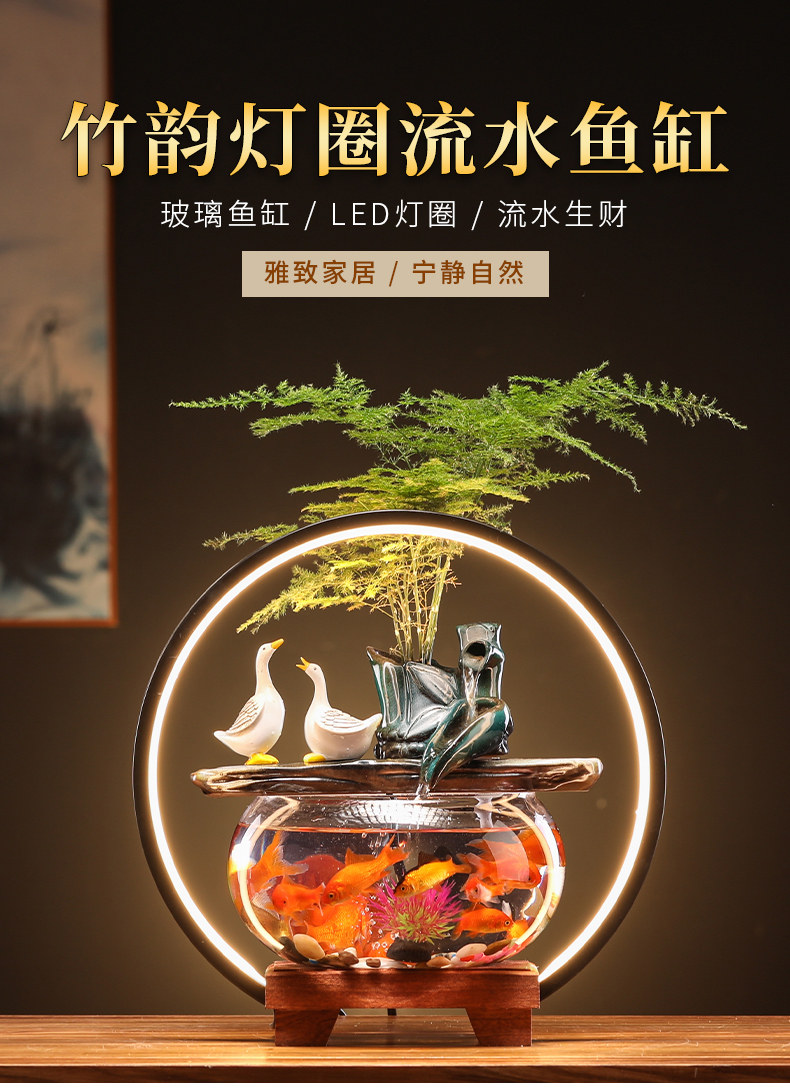 Bamboo rhyme water fish tank - Sky blue swan rotation to run the water tank - Sky blue deer with bamboo rhyme lamp ring water fish tank - Sky blue swan love when running the lamp ring fish tank - Sky blue deer accompanies