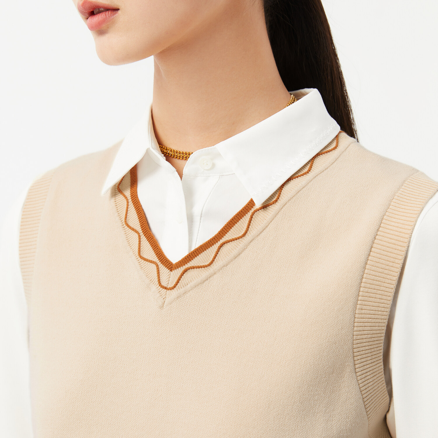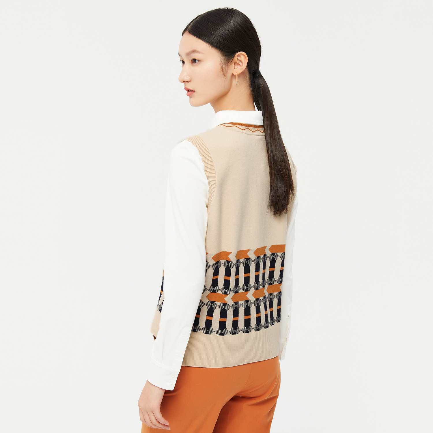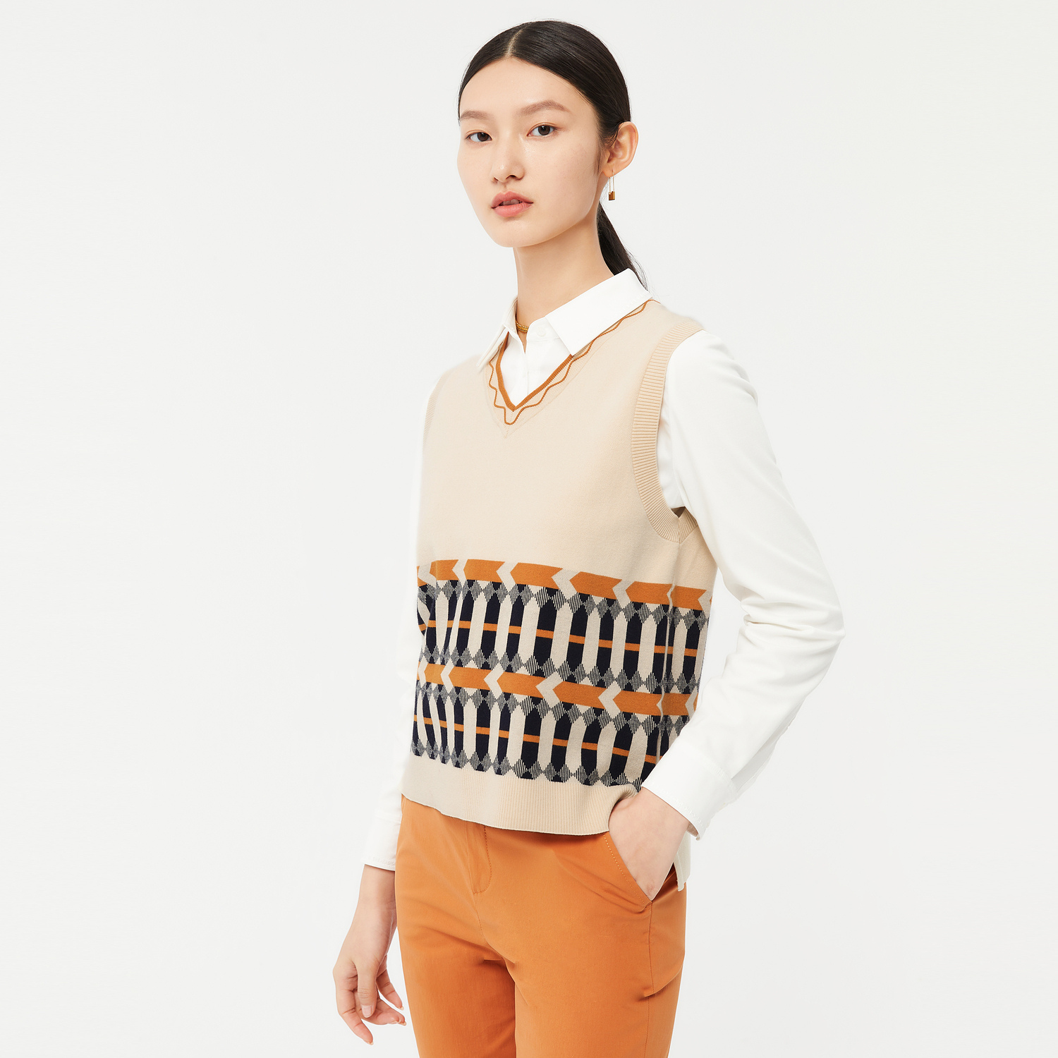 JZ Jiuzi retro art fashion V collar 2022 Spring new female geometric jacquard knit sleeveless laminated vest