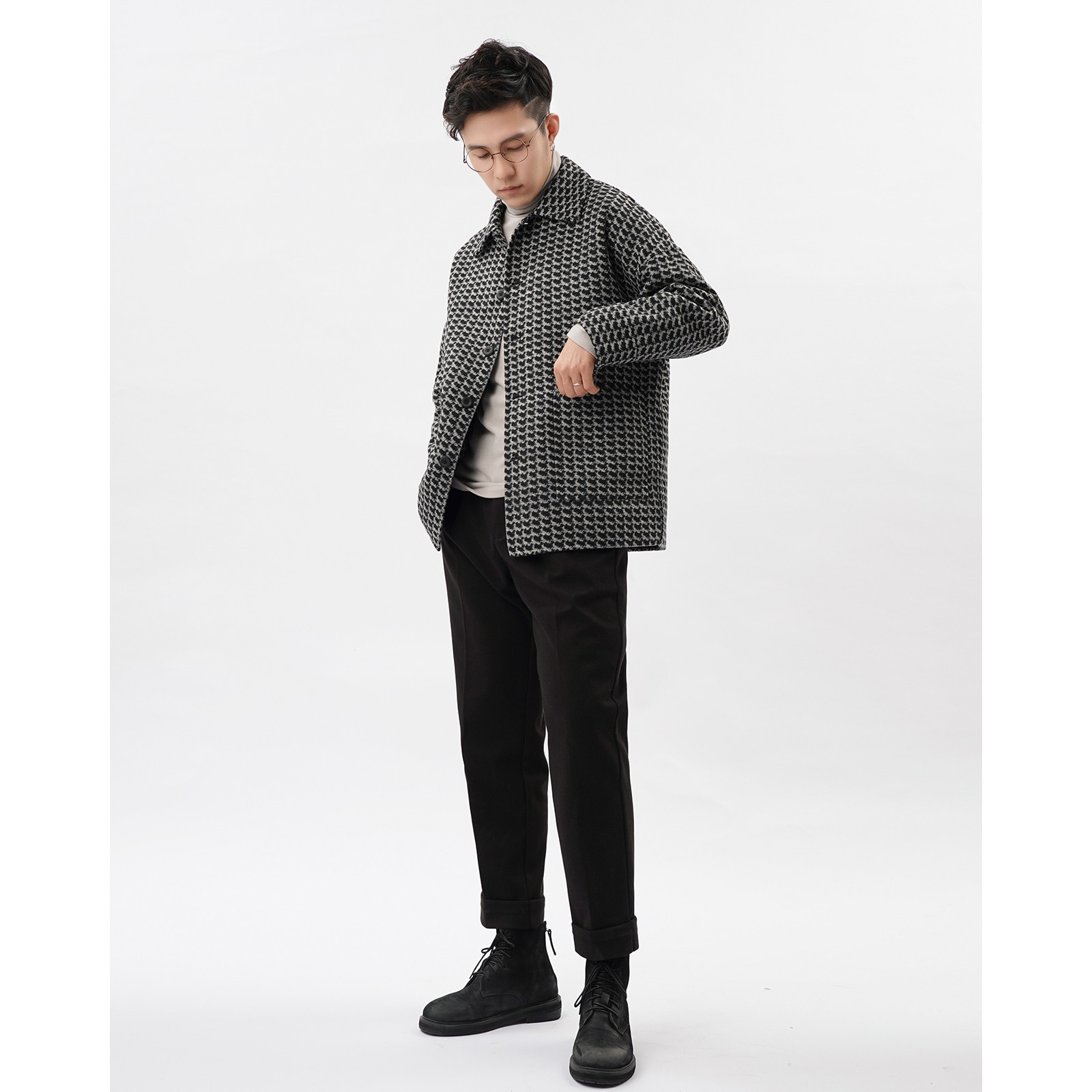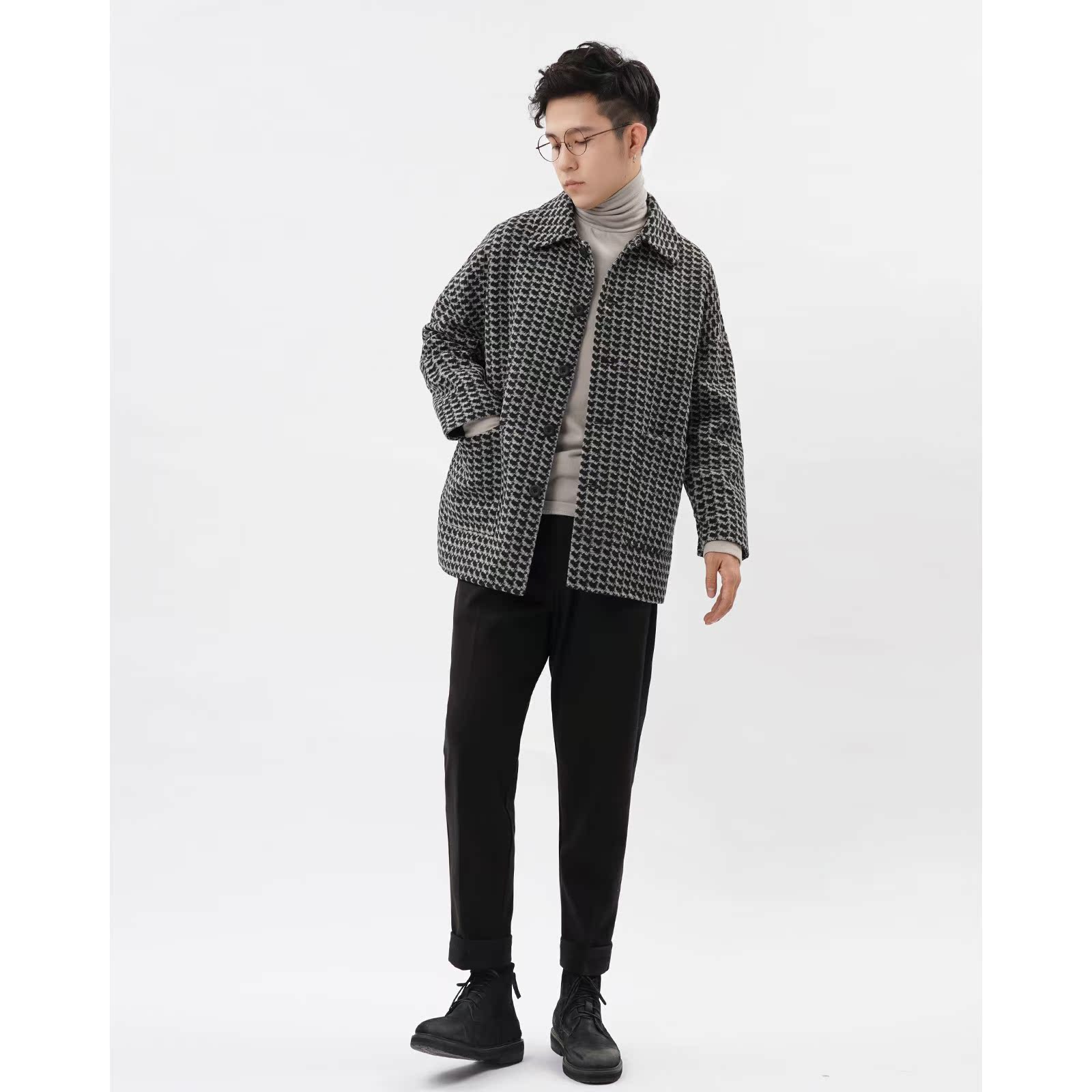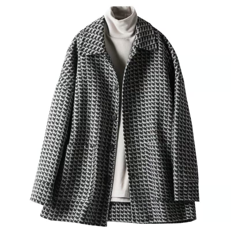 China map bifacial, men's jacket fur, and short-made wool cashmere plaid, male coat